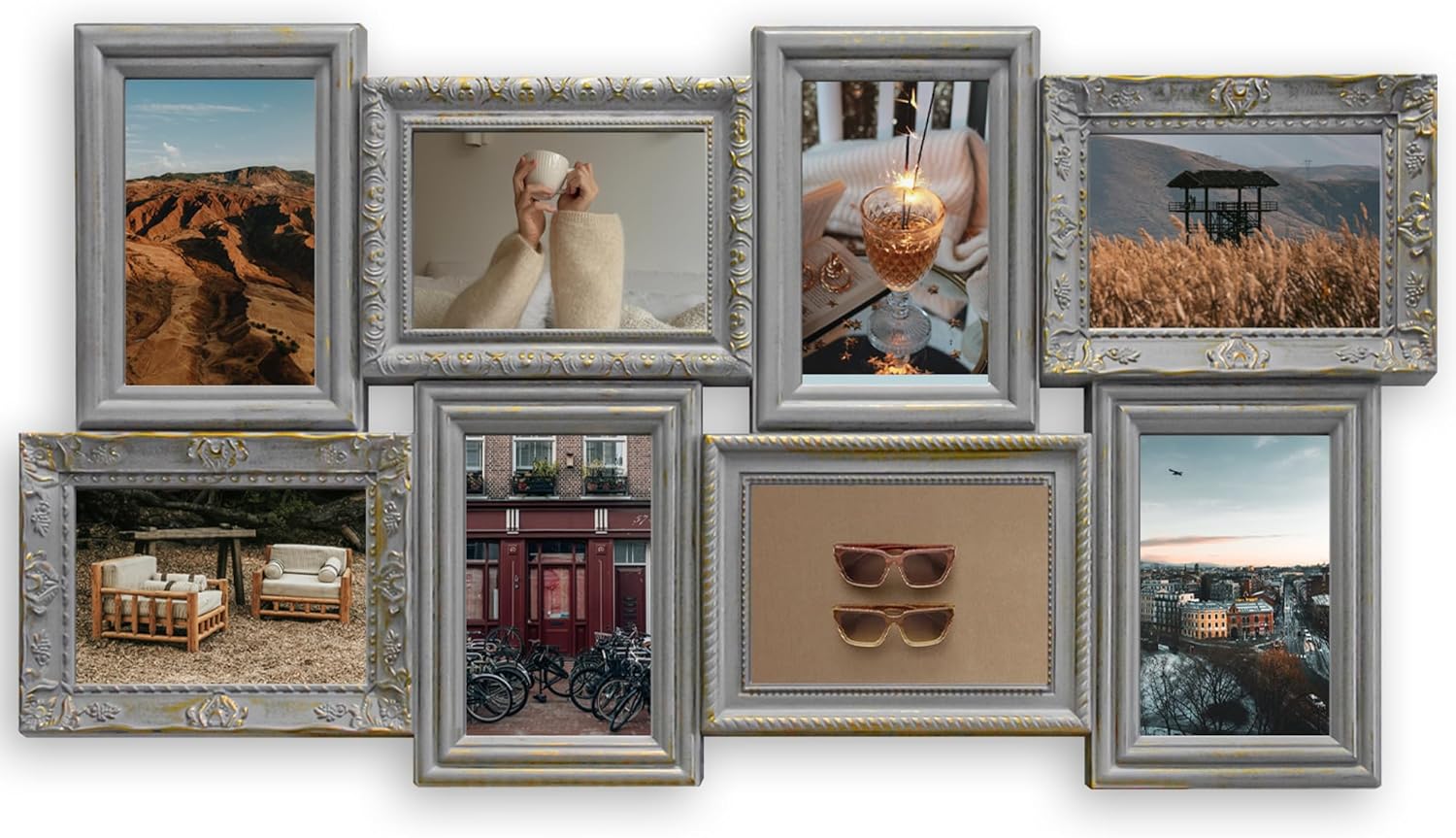 Jerry & Maggie 6 Opening Collage Photo Frame Rustic 23×18 Vintage Embossed Finish PVC Picture Frames Selfie Gallery Collage Wall Hanging For 6×4 Photo, Vintage