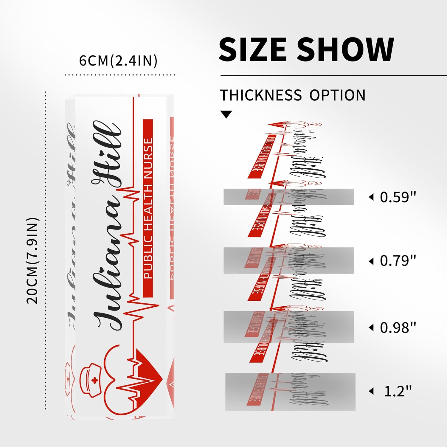 - High Quality Products: This high quality custom nurse name plate is made of eco-friendly acrylic material, using the most professional cutting technology, the most advanced HD printing technology and the latest adhesives, which makes the product look beautiful, strong and durable, and the problem of peeling off of the pattern never exists, so please rest assured to buy our name plate for office desk.