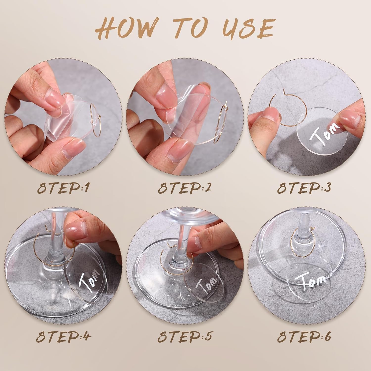 - Quality Material: the wine glass charms are made from quality transparent acrylic, providing a durable accessory that is easy to clean; Stains can easily be wiped away, making each piece endlessly reusable; Simply remove the protective film on each charm before using