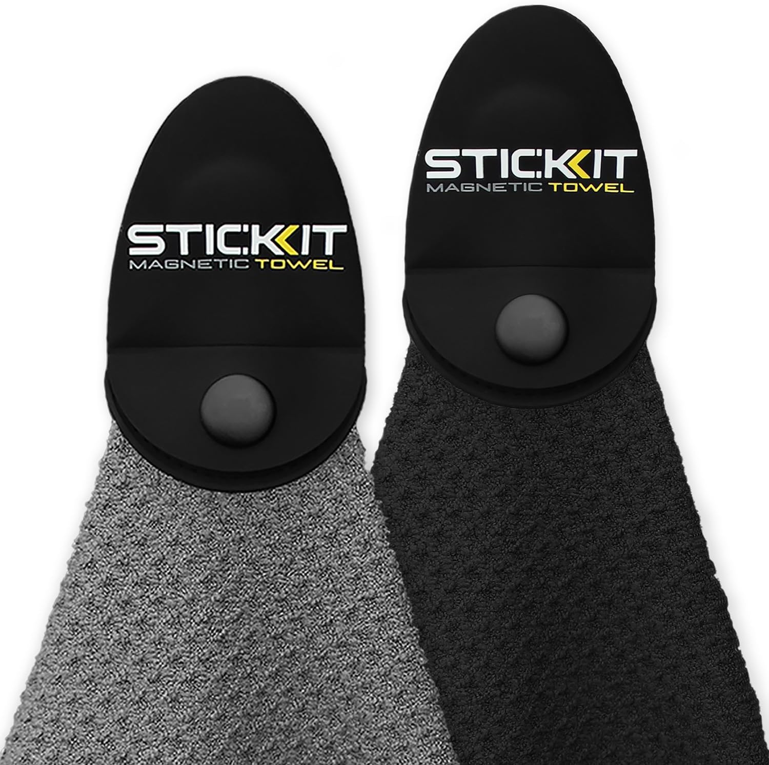 - ALWAYS WITHIN ARMβS REACH - The 2 Pack Gray/Black STICKIT Magnetic Towels are the ultimate GRAB-N-GO Golf towel. The powerful magnet offers ultimate convenience. Stick it on your Golf Cart, Golf Clubs, or any conveniently placed metal object