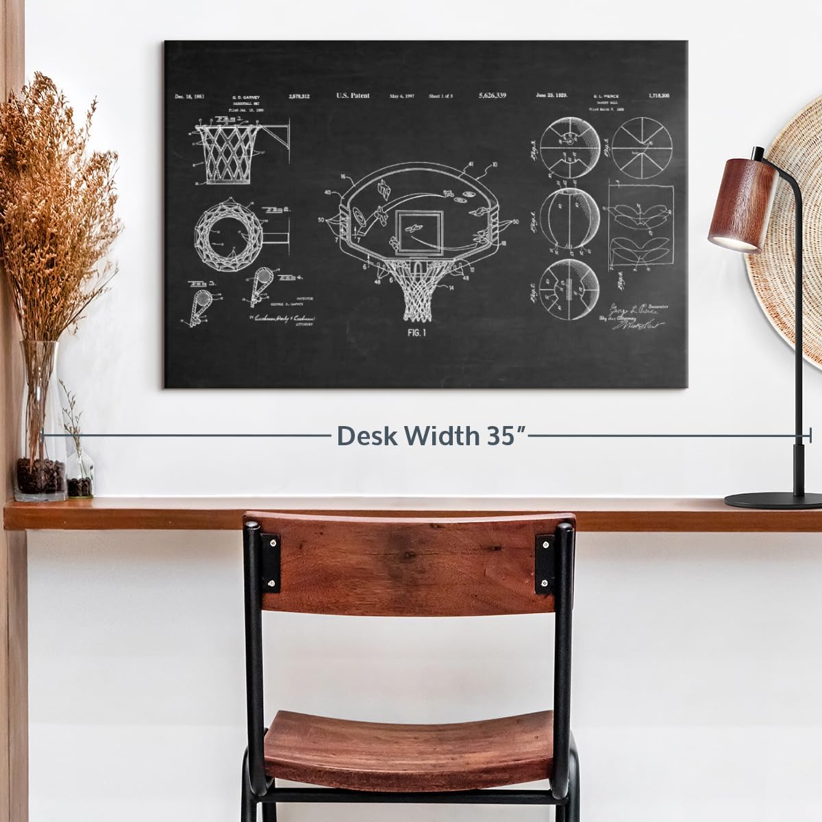 - Basketball Patent Art- Our patent prints and wall art for the office feature a black and white blueprint of the basketball board, net, and ball. Make your room designs more interesting with our vintage and unique sports decor for the boys bedroom.