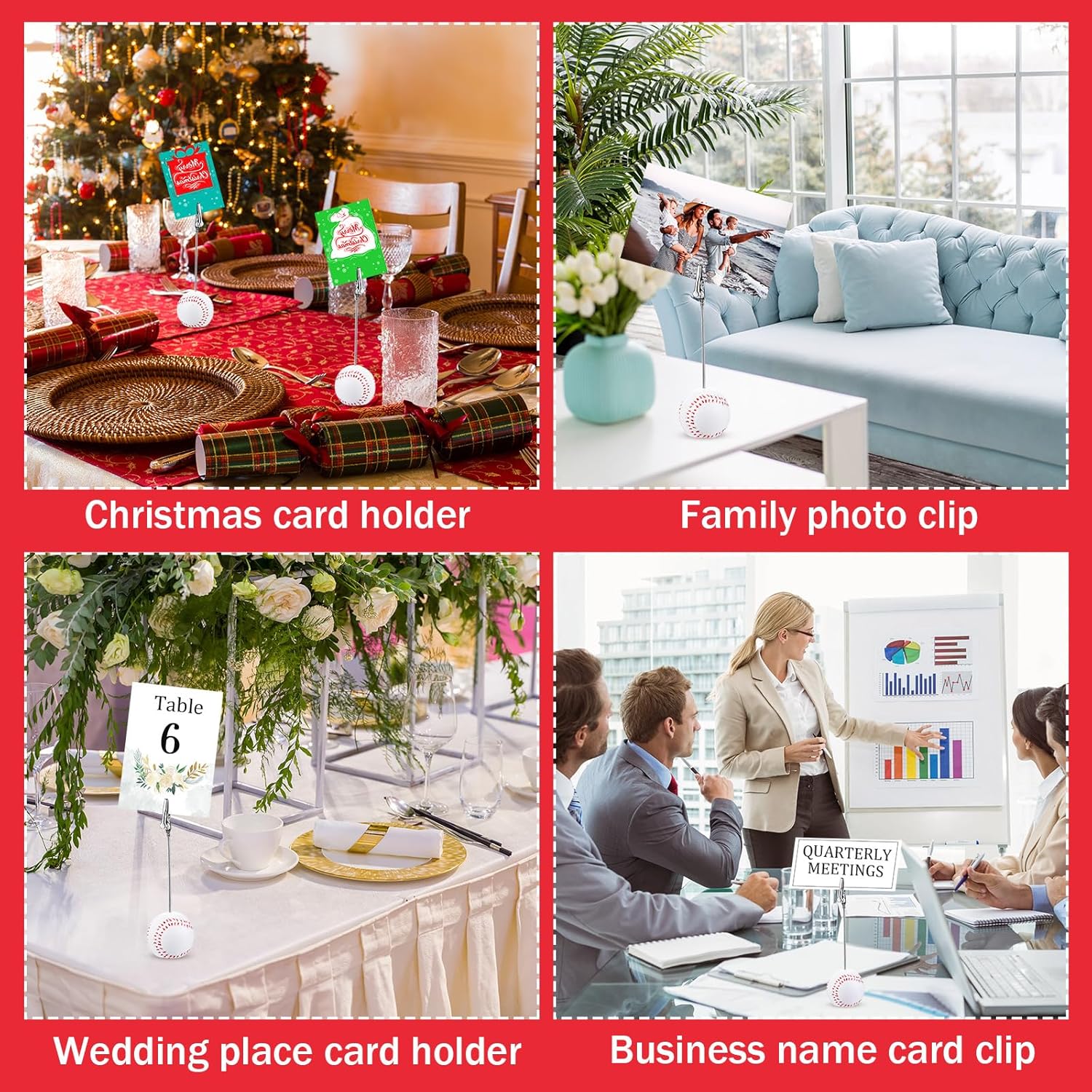 - Robust Design Features: each photo card holder presents a sturdy crocodile clip at the top of the sports ball base; The feature of these table place card holders ensure your cards and photos remain upright, without any risk of falling over; The resin material gives the sports ball base holder adequate weight to keep it steady on your table, allowing it to efficiently perform its display and decor tasks