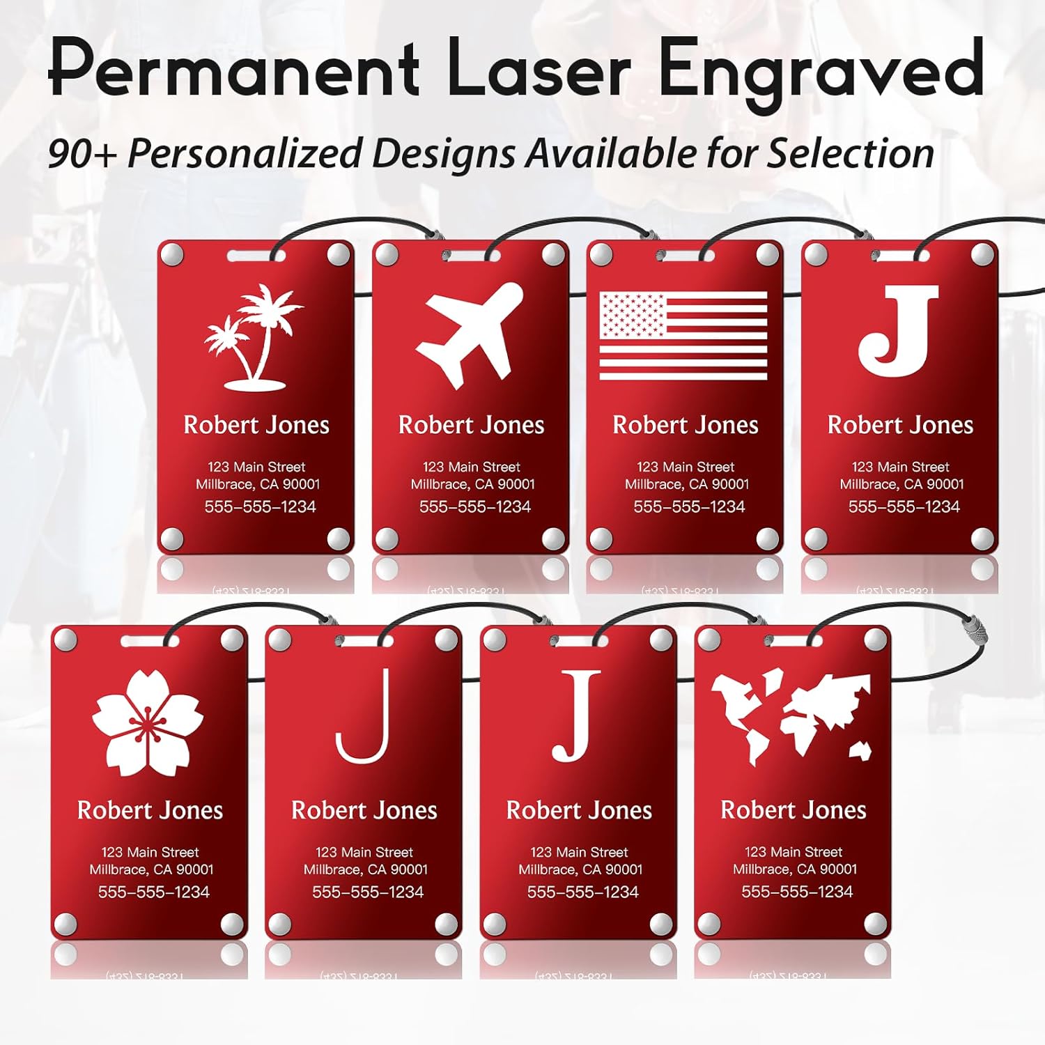 Personalized Luggage Tags: Custom Metal Luggage Tags for Suitcases, Backpacks and Bags with Your Personalized Text (Red)