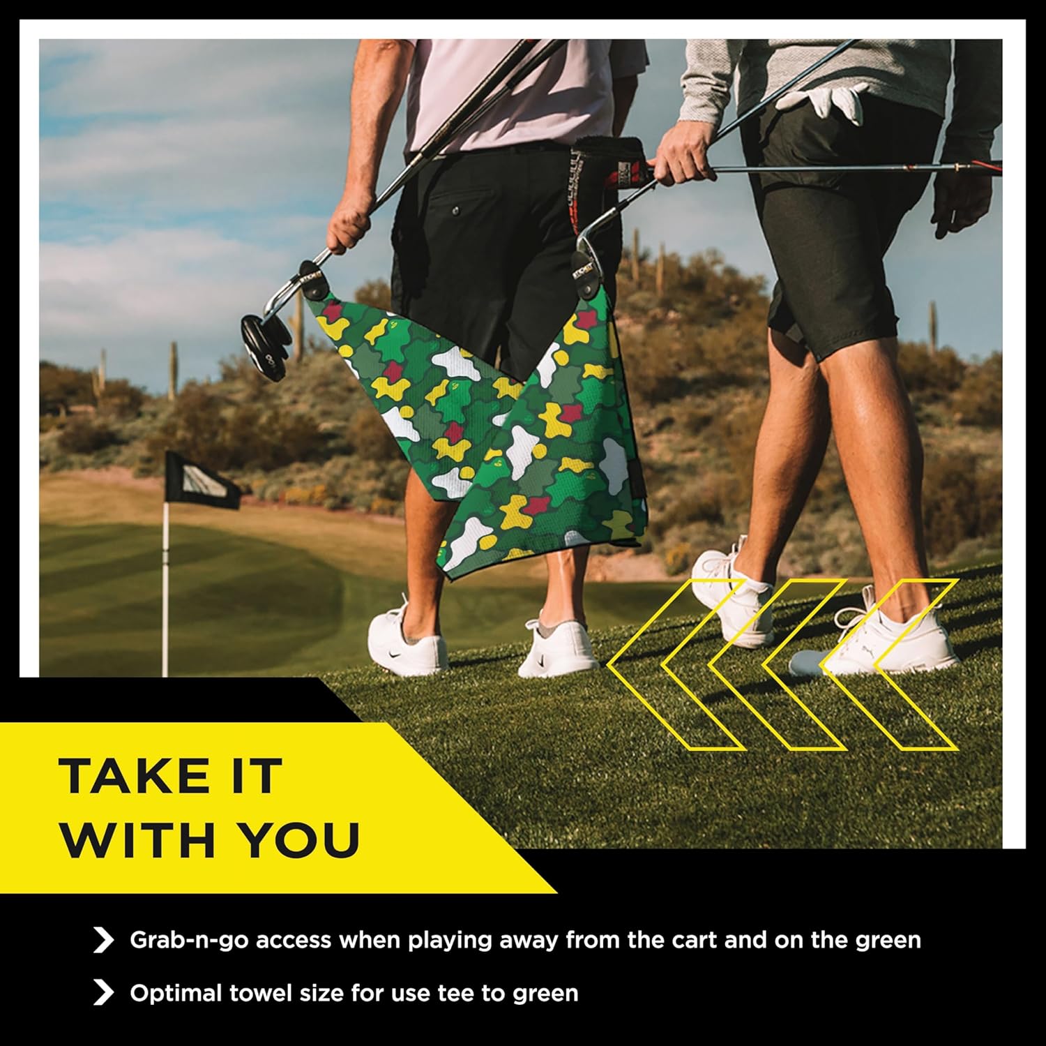 STICKIT Magnetic Golf Towel, Camo Augusta Green | Top-Tier Microfiber Golf Towel with Deep Waffle Pockets | Industrial Strength Magnet for Strong Hold to Golf Carts or Clubs | Golf Greens Camo
