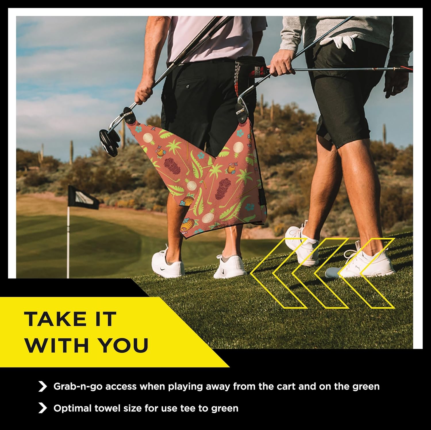 STICKIT Magnetic Salmon Pink Tiki Golf Towel | Top-Tier Microfiber Golf Towel with Deep Waffle Pockets | Industrial Strength Magnet for Strong Hold to Golf Carts or Clubs
