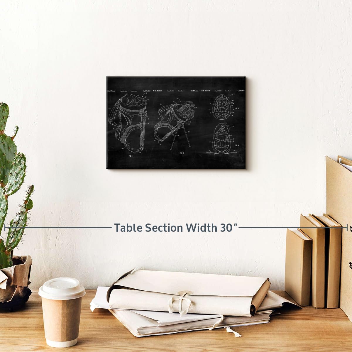 ElephantStock Ridged Golf Bag Dividers BW Patent Canvas - 1 Panel Sports Patent Wall Art Decor - Sports Decorations for Boys Room - Wall Art and Office Decor - 12" X 8"