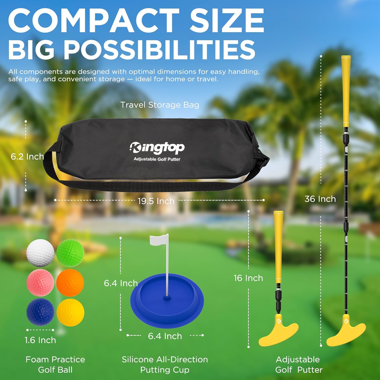 KINGTOP Adjustable Golf Putter – Retractable Shaft, Lightweight Travel Putter with Practice Balls & Putting Cup, Left & Right-Handed Design