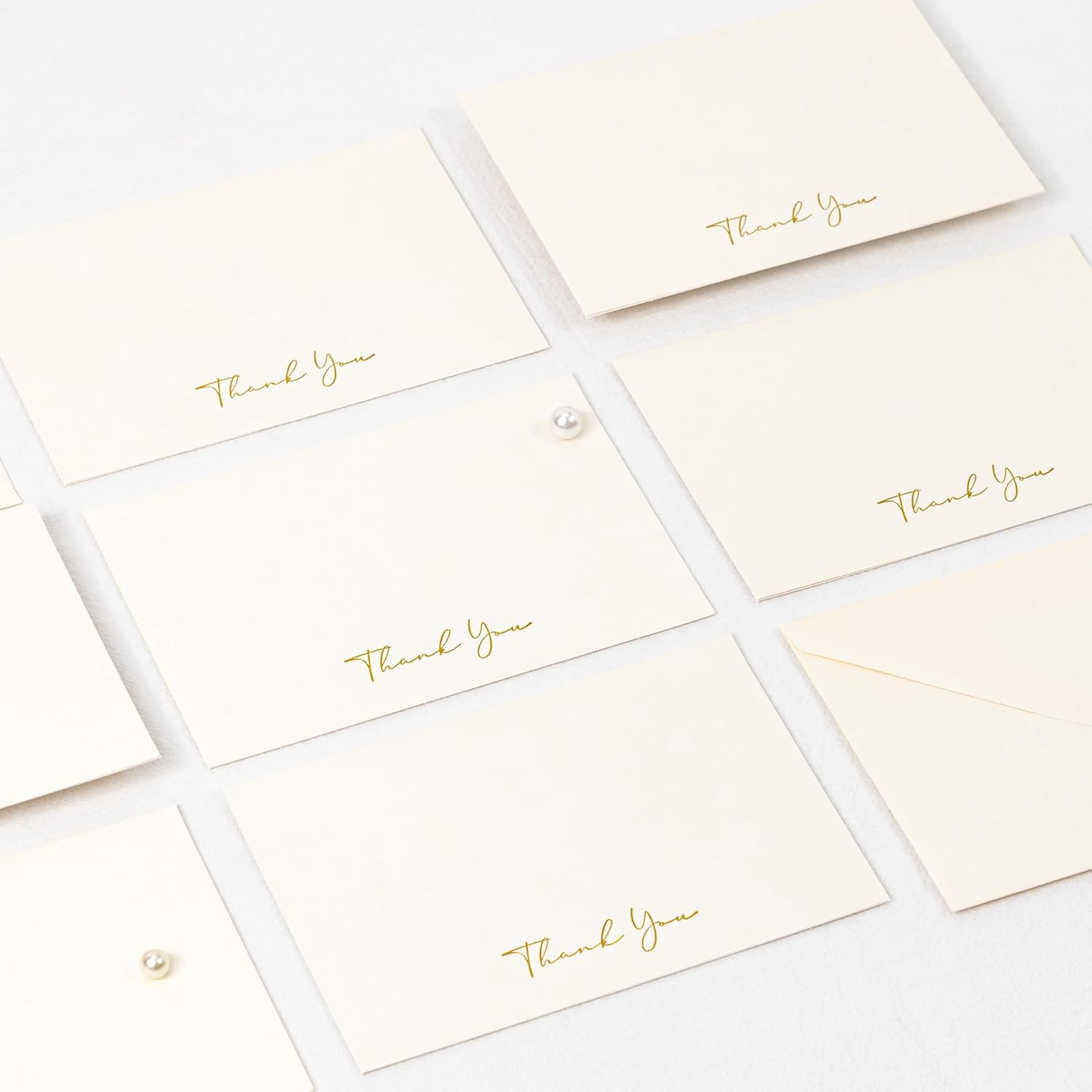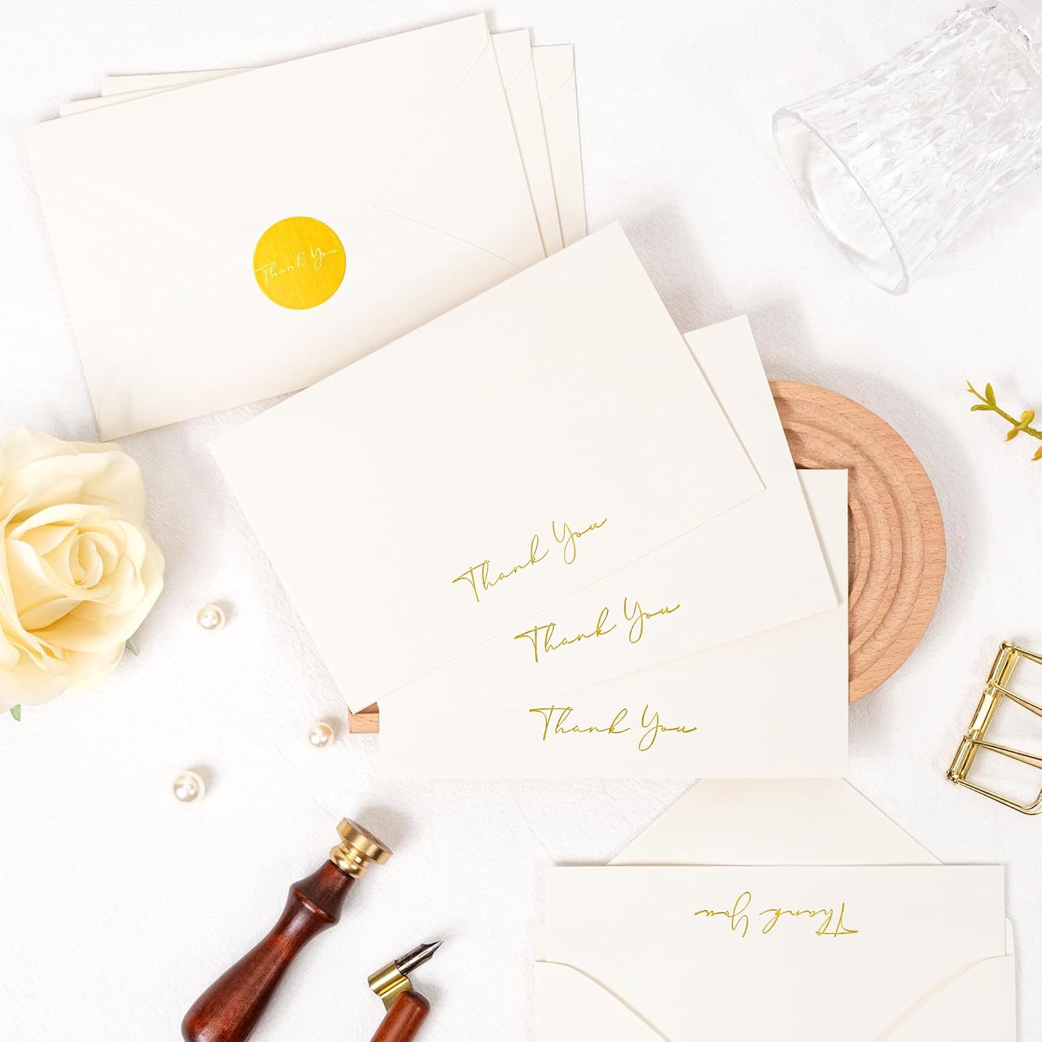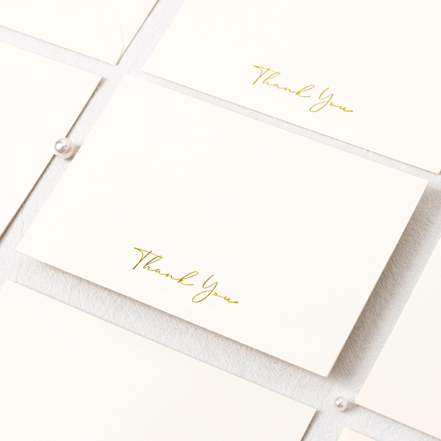 - Elegant Design: Elevate your gratitude with this exquisite set of 4x6 thank you cards with envelopes, featuring elegant hues. Each thank you card is adorned with luxe gold foil 'thank you' script at the base—a timeless touch for weddings, gifts, or heartfelt notes