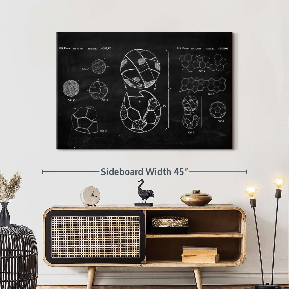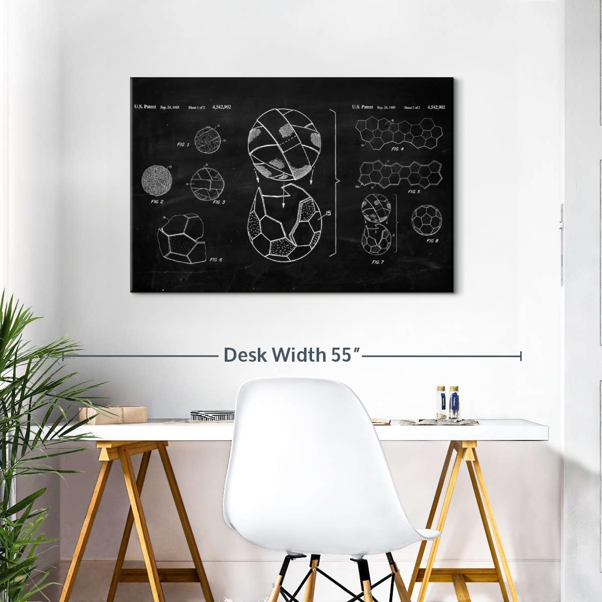 ElephantStock Soccer Ball BW Patent Canvas - 1 Panel Sports Patent Wall Art Decor - Sports Decorations for Boys Room - Wall Art and Office Decor - 39" X 26"