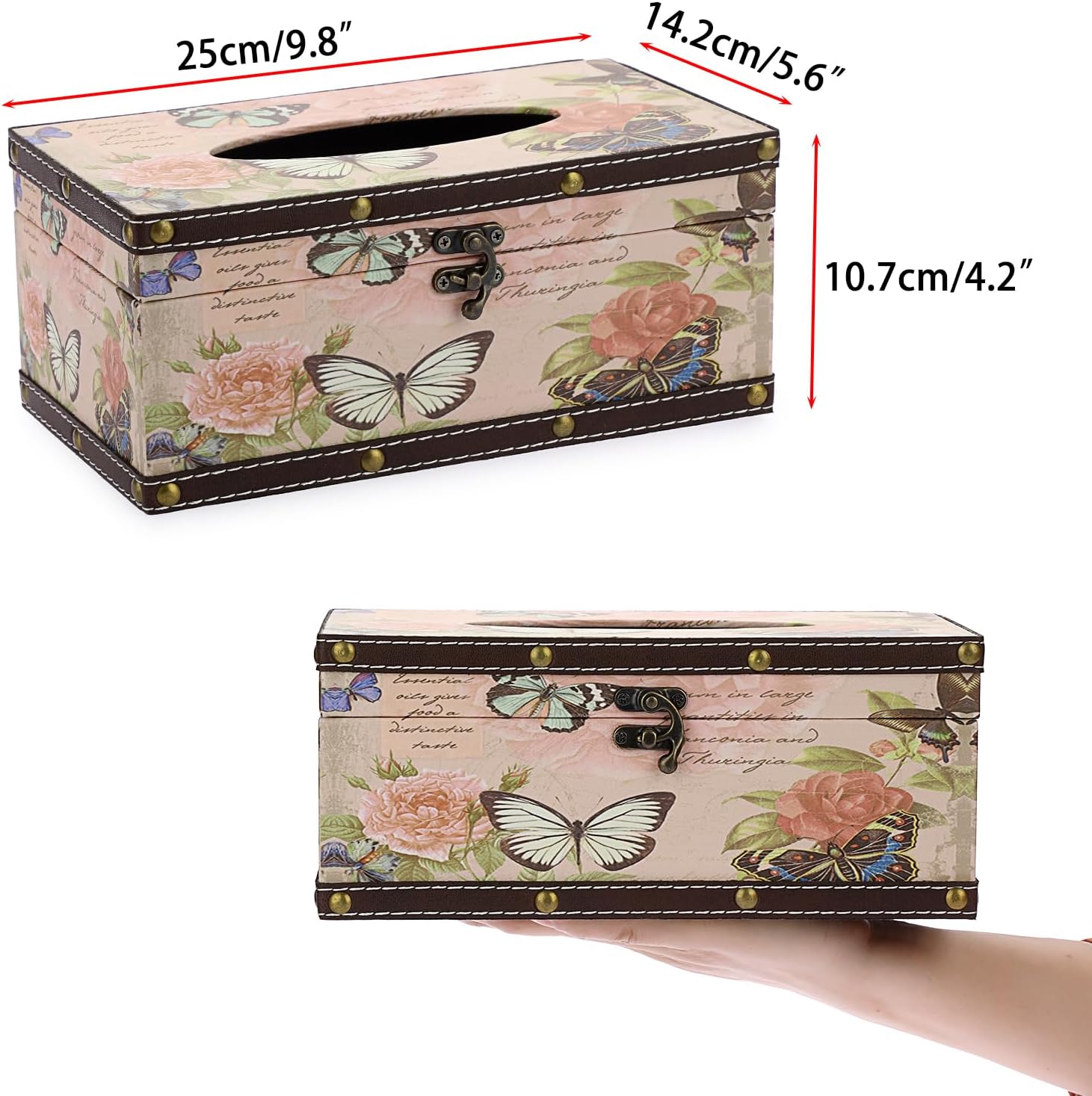 - 💗Retro Style Decoration - The retro and vintage style tissue box can blend in perfectly with most home and counter décor, such as: Tropical, coastal, boho, beach, nautical theme; It can not only match well with your various furniture and home décor, but also add nice looking and aesthetic touch to your home.