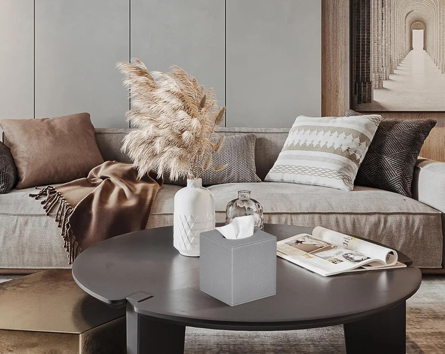 Tissue Box Cover Square Tissue Box Holder for Bathroom (Grey)