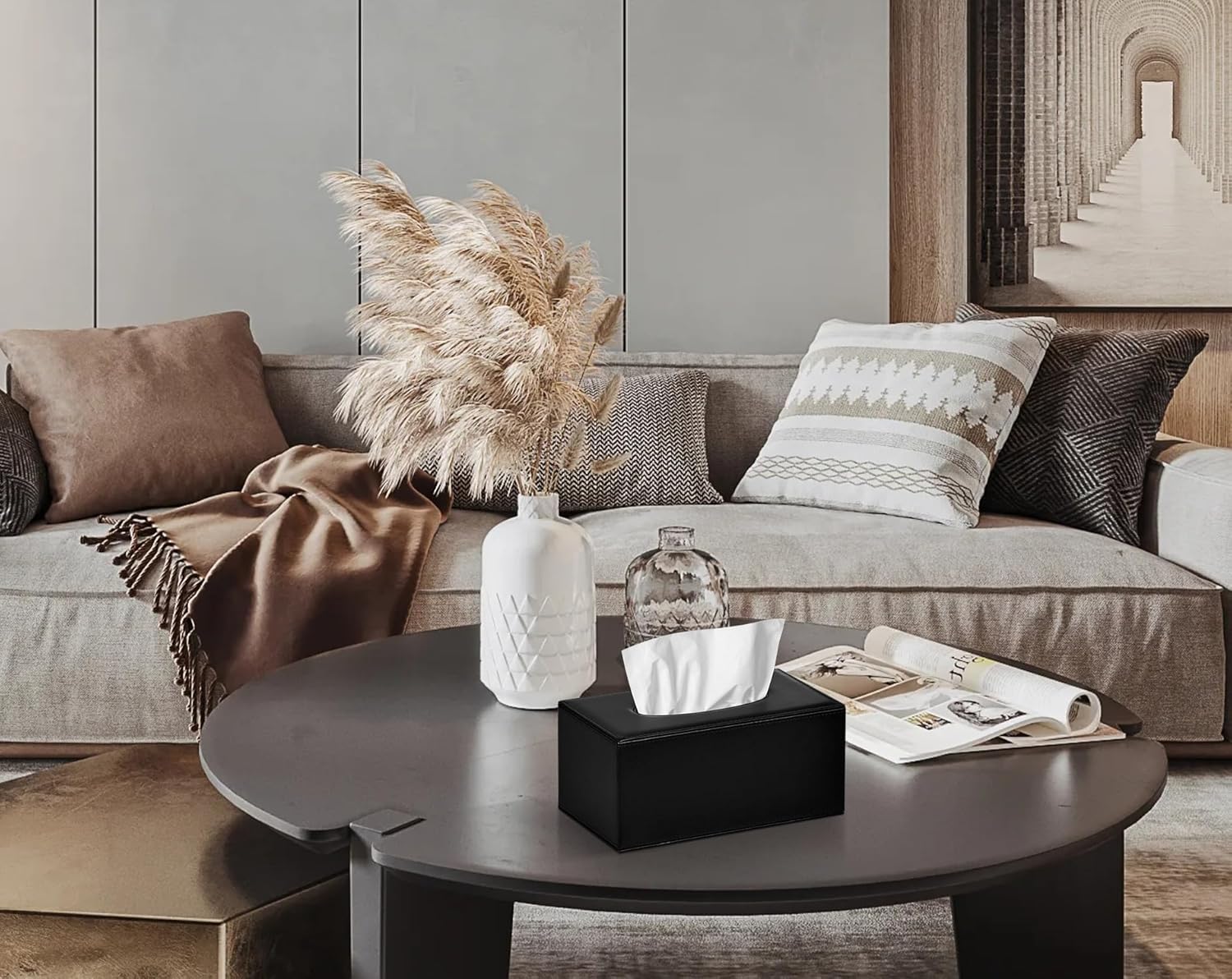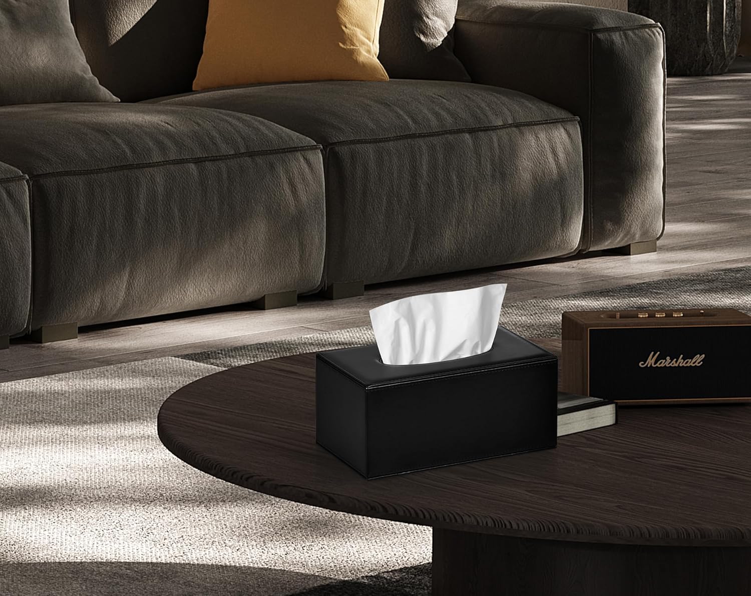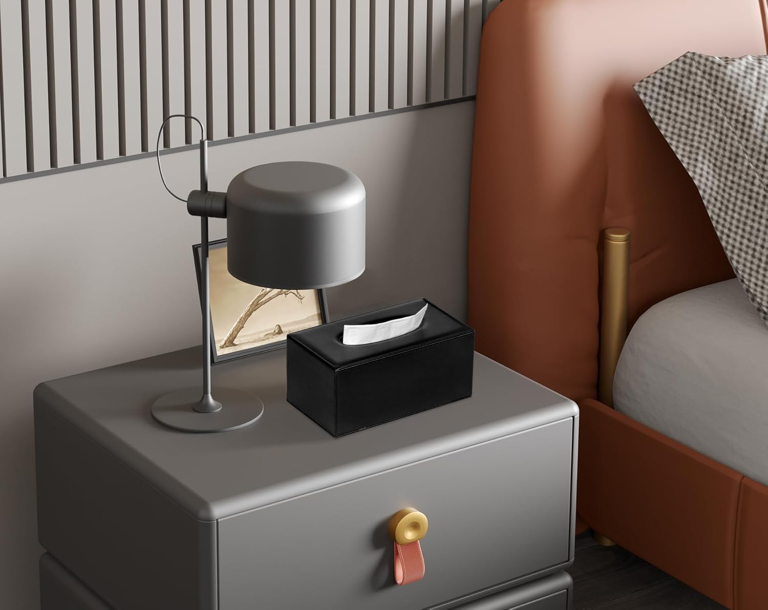 Tissue Box Cover Rectangular Tissue Box Holder for Bathroom (Black)