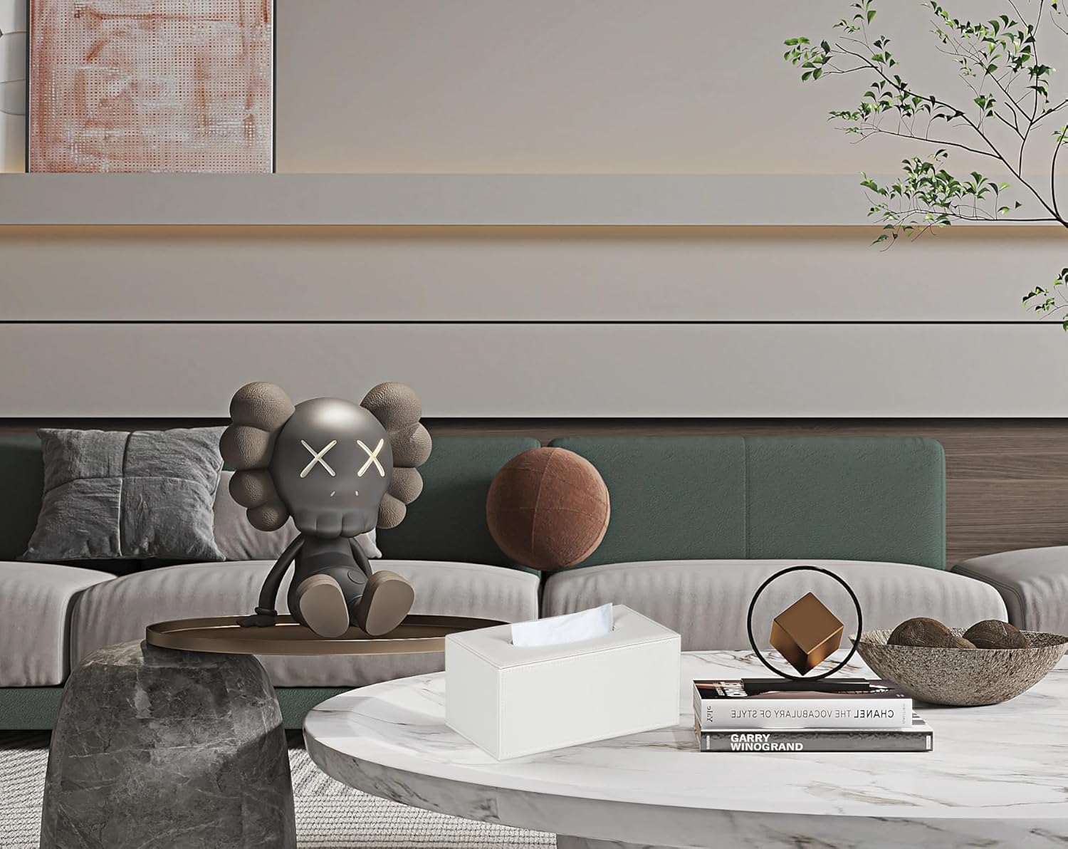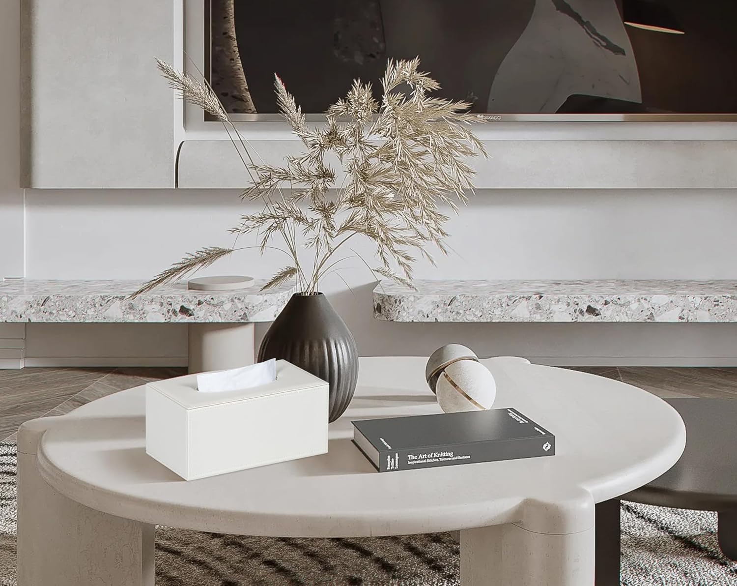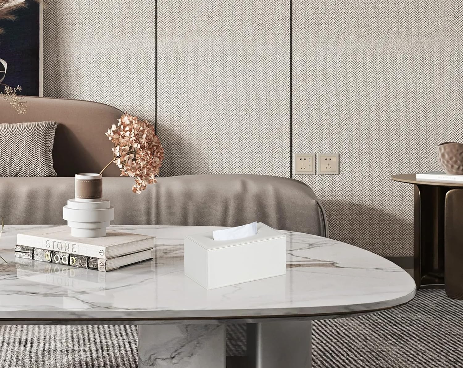 Tissue Box Cover Rectangular Tissue Box Holder for Bathroom (White)