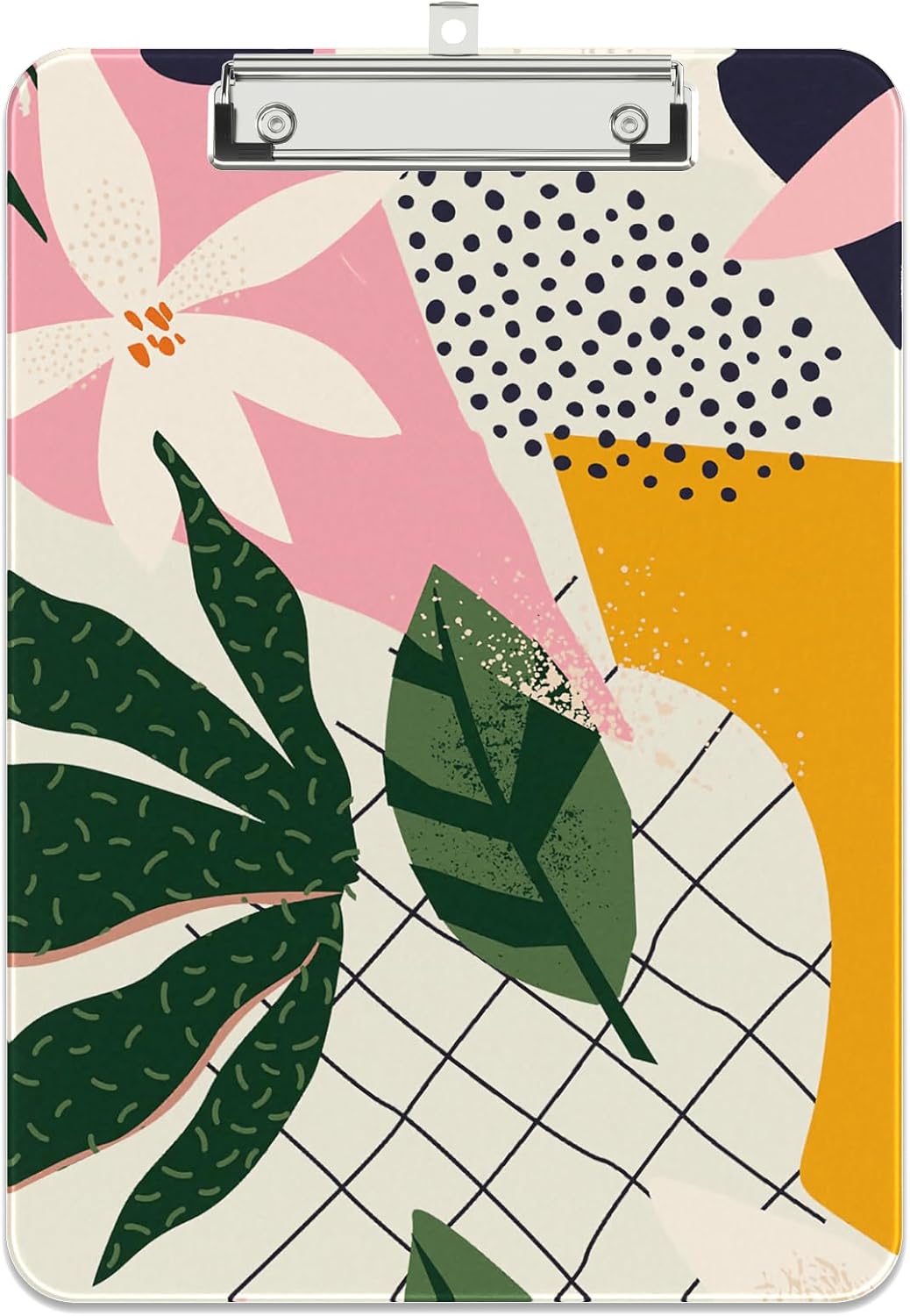 Rimilak Plastic Clipboards with Metal Clip, A4 Letter Size 9 x 12.5 in, Office Decorative for Students Women Men and Kids, Cute Custom Pattern, Abstract Leaves