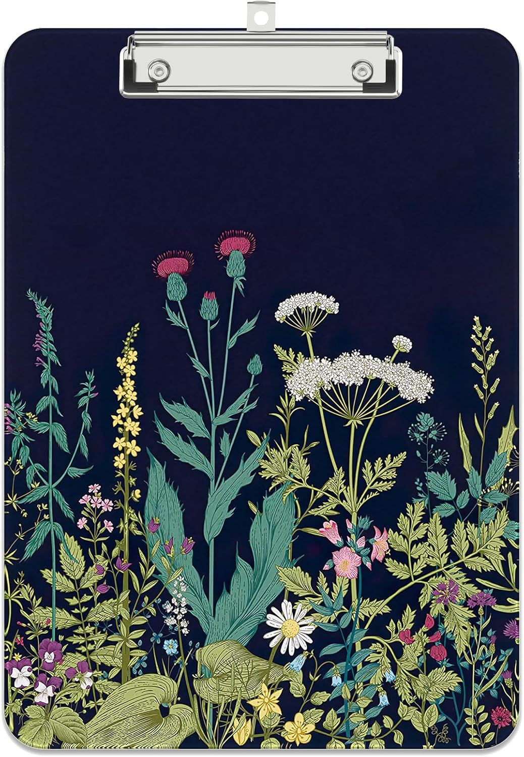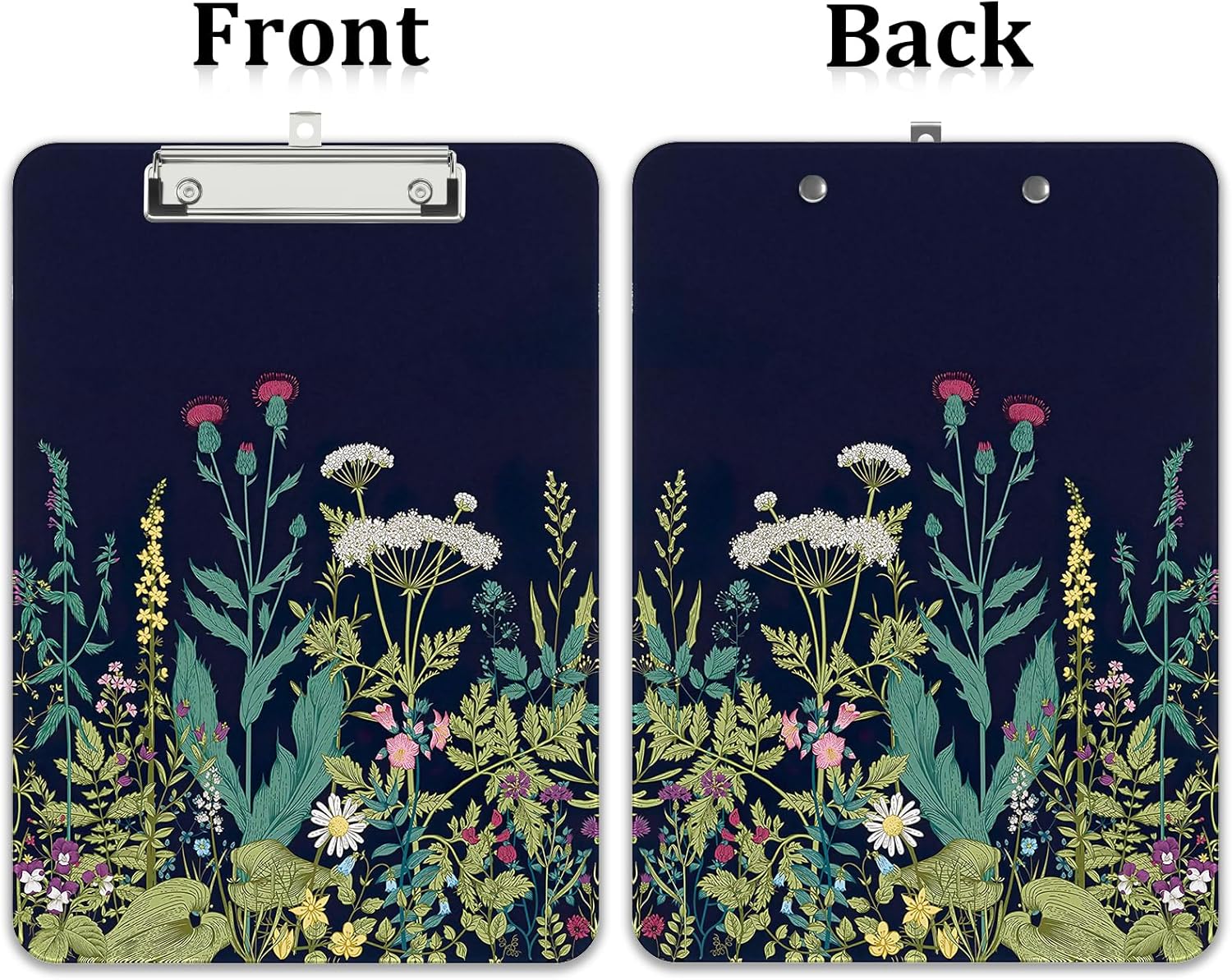 Rimilak Plastic Clipboards with Metal Clip, A4 Letter Size 9 x 12.5 in, Office Decorative for Students Women Men and Kids, Cute Custom Pattern, Night Flower