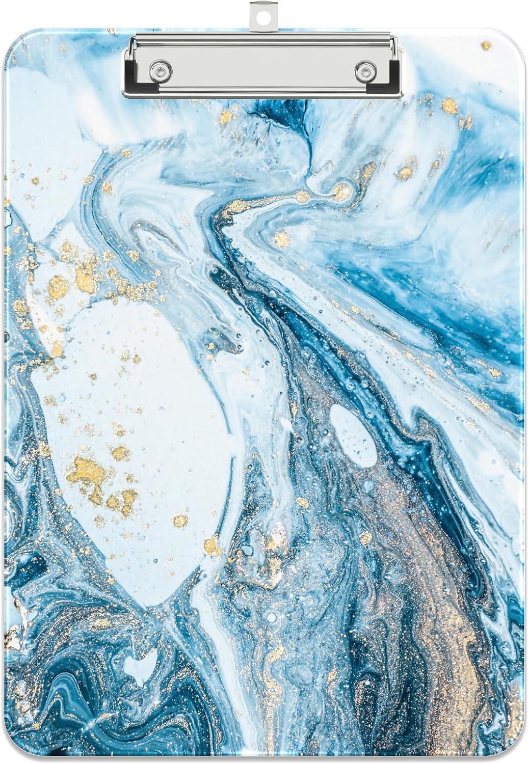 Rimilak Plastic Clipboards with Metal Clip, A4 Letter Size 9 x 12.5 in, Office Decorative for Students Women Men and Kids, Cute Custom Pattern, Blue Marble