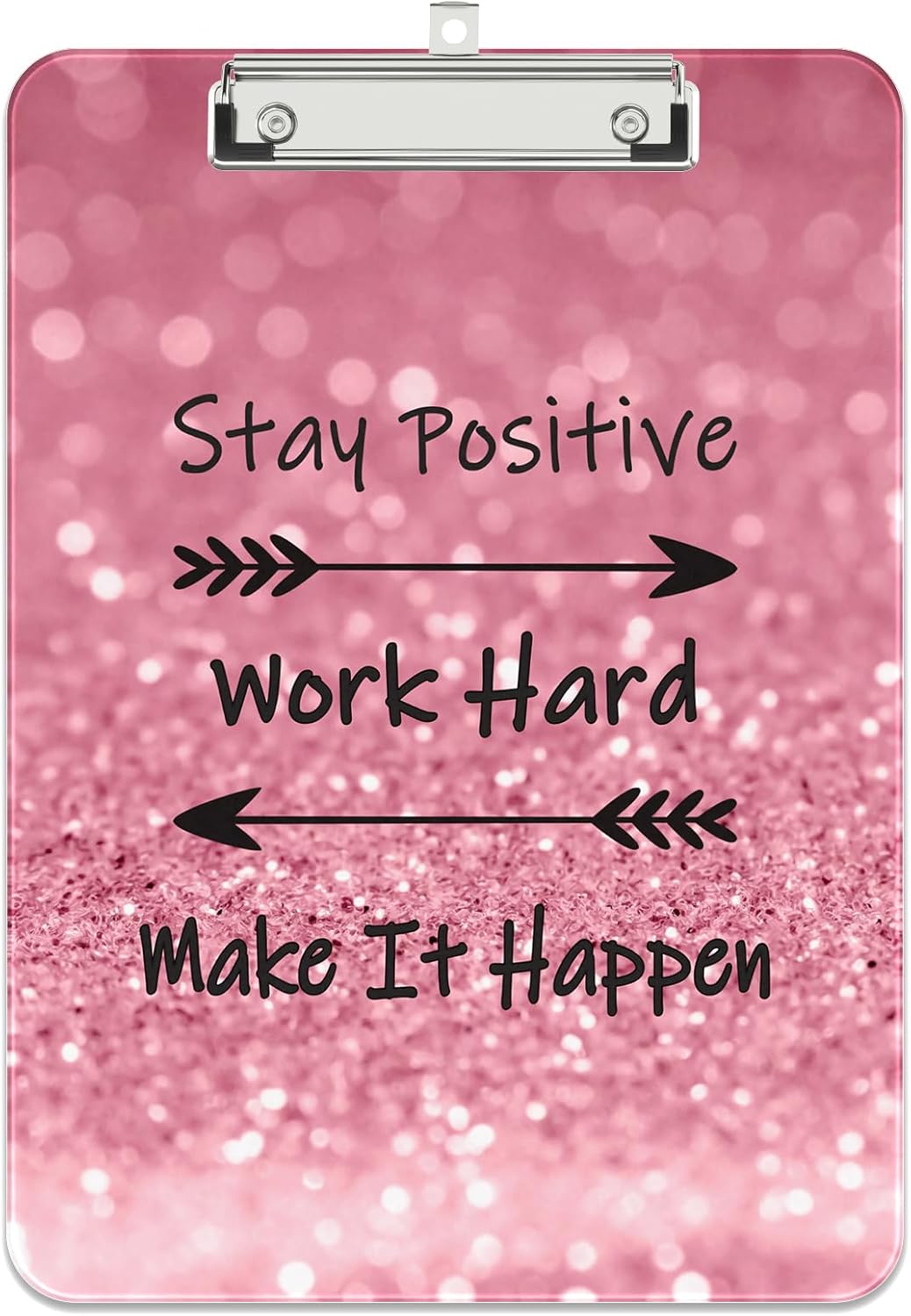 Rimilak Plastic Clipboards with Metal Clip, A4 Letter Size 9 x 12.5 in, Office Decorative for Students Women Men and Kids, Cute Custom Pattern, Work Hard