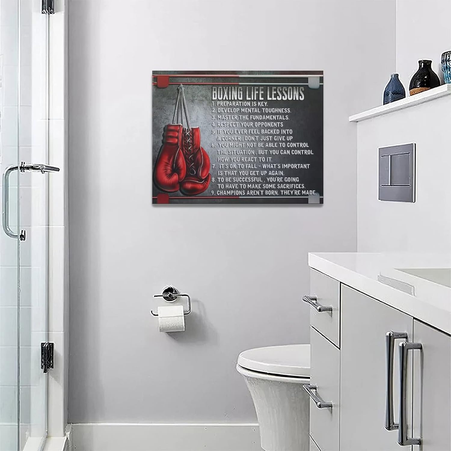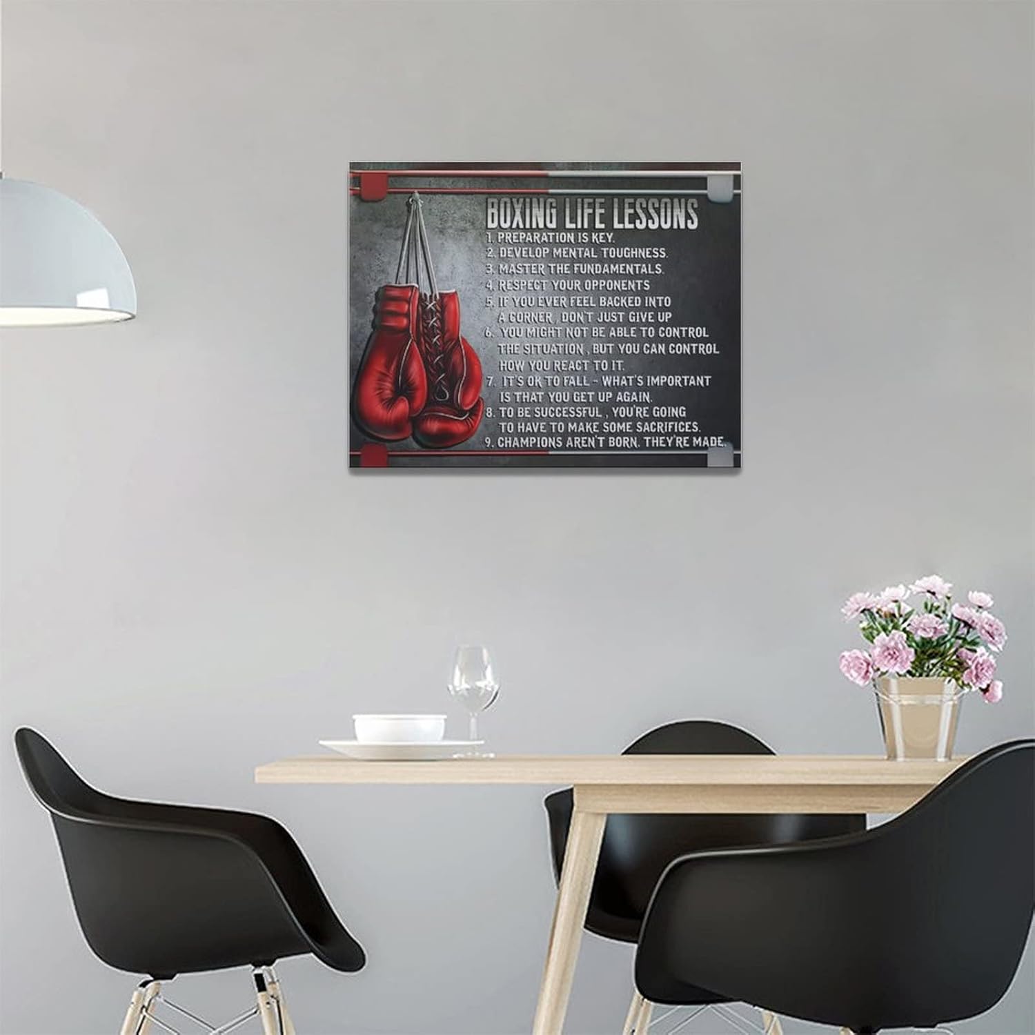 Boxing Wall Art Sports Boxing Lessons Pictures Wall Decor Motivational Quotes Boxing Gloves Canvas Painting Artwork Modern Home Decorations Framed for Bedroom Office Living Room 12"x16"