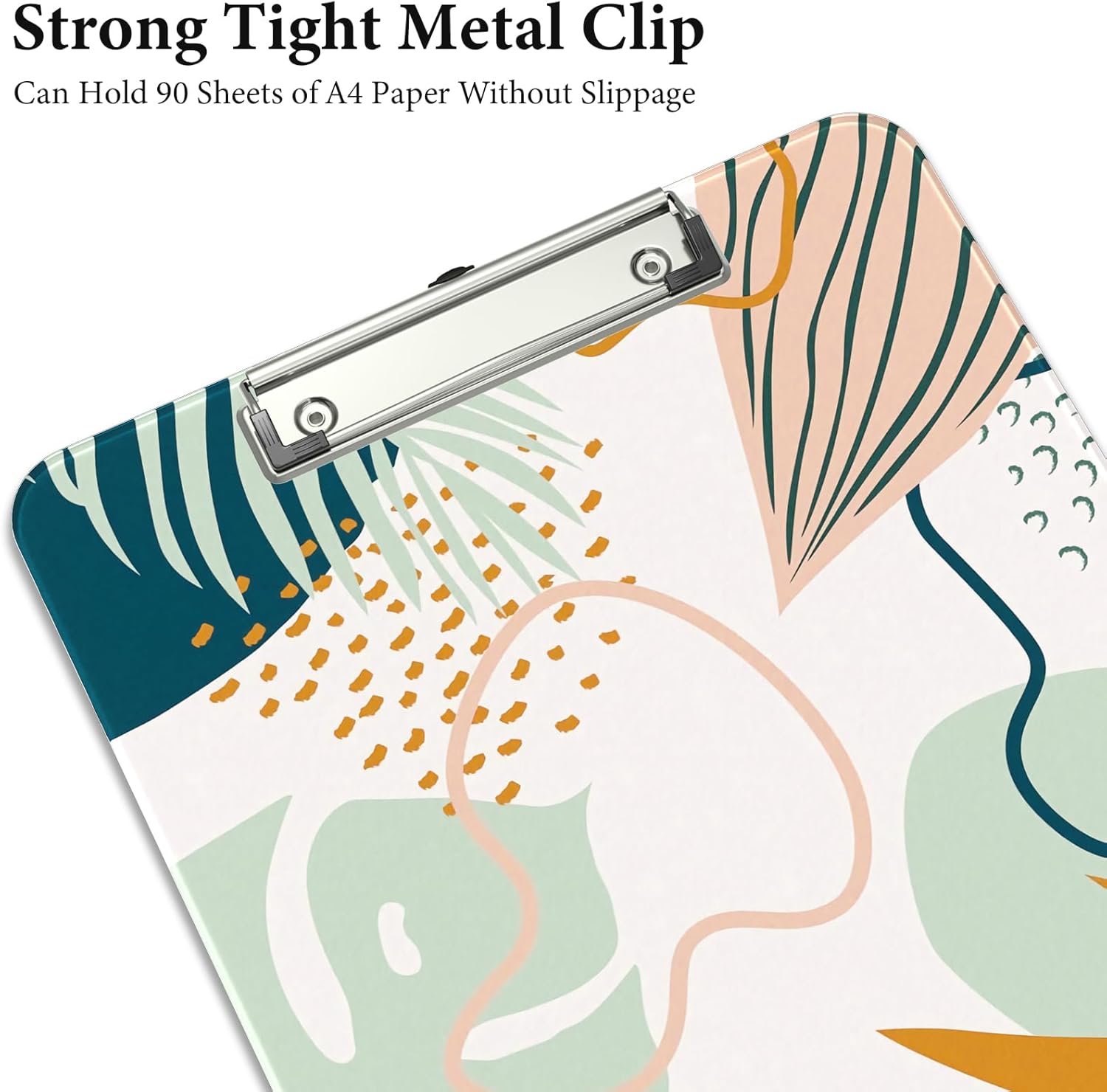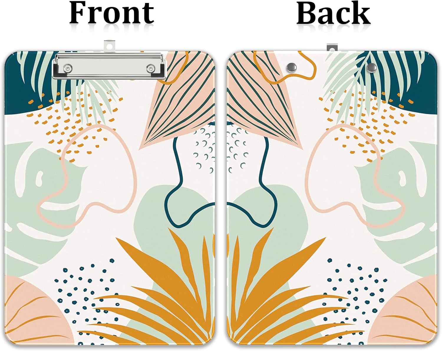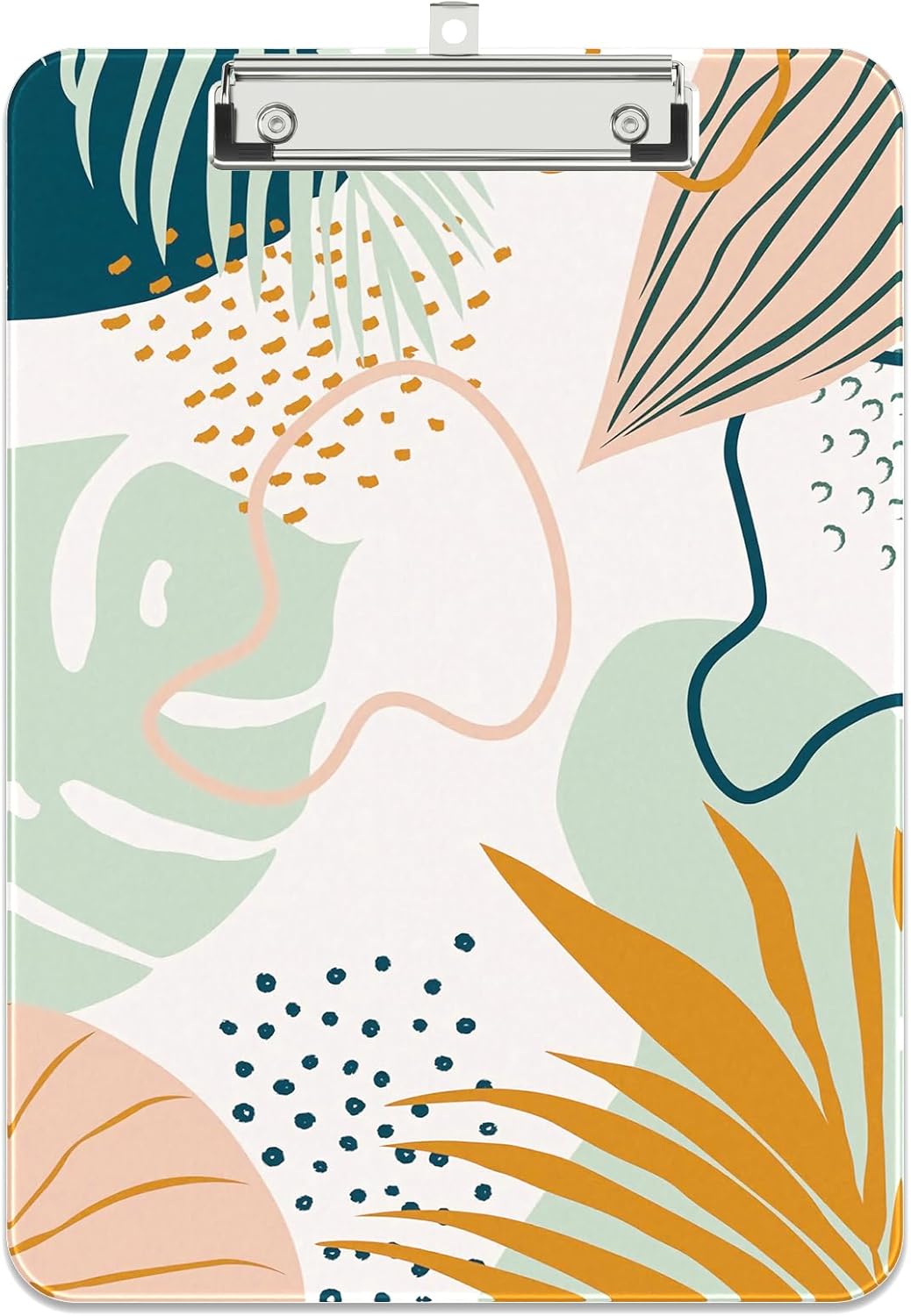 Rimilak Plastic Clipboards with Metal Clip, A4 Letter Size 9 x 12.5 in, Office Decorative for Students Women Men and Kids, Cute Custom Pattern, Bohe Leaves