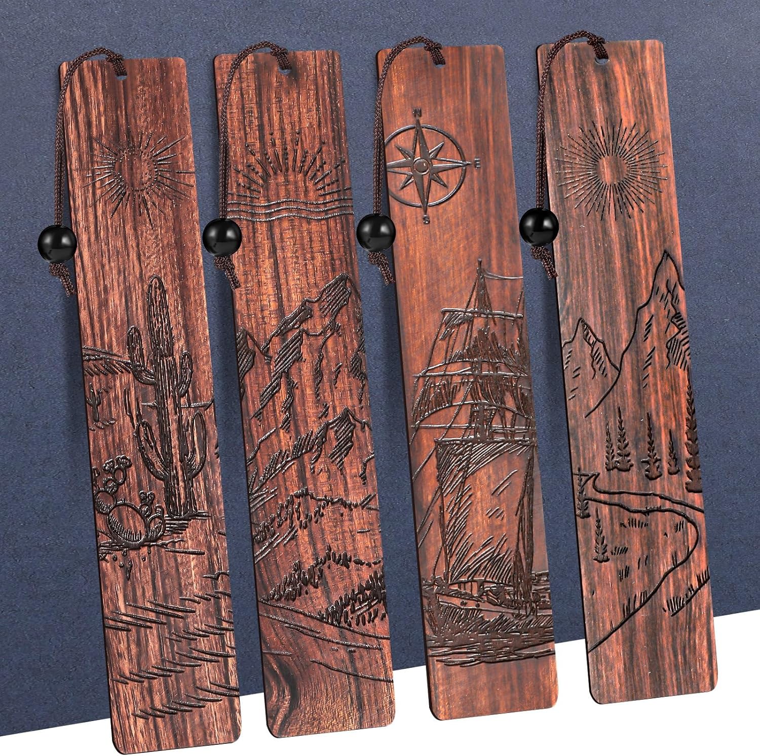 4Pcs Wood Bookmark for Men,Adventure Wooden Carving Book Mark Vintage Bookmark Christmas Gift for Men Book Lovers Birthday Present Students Teachers Appreciation