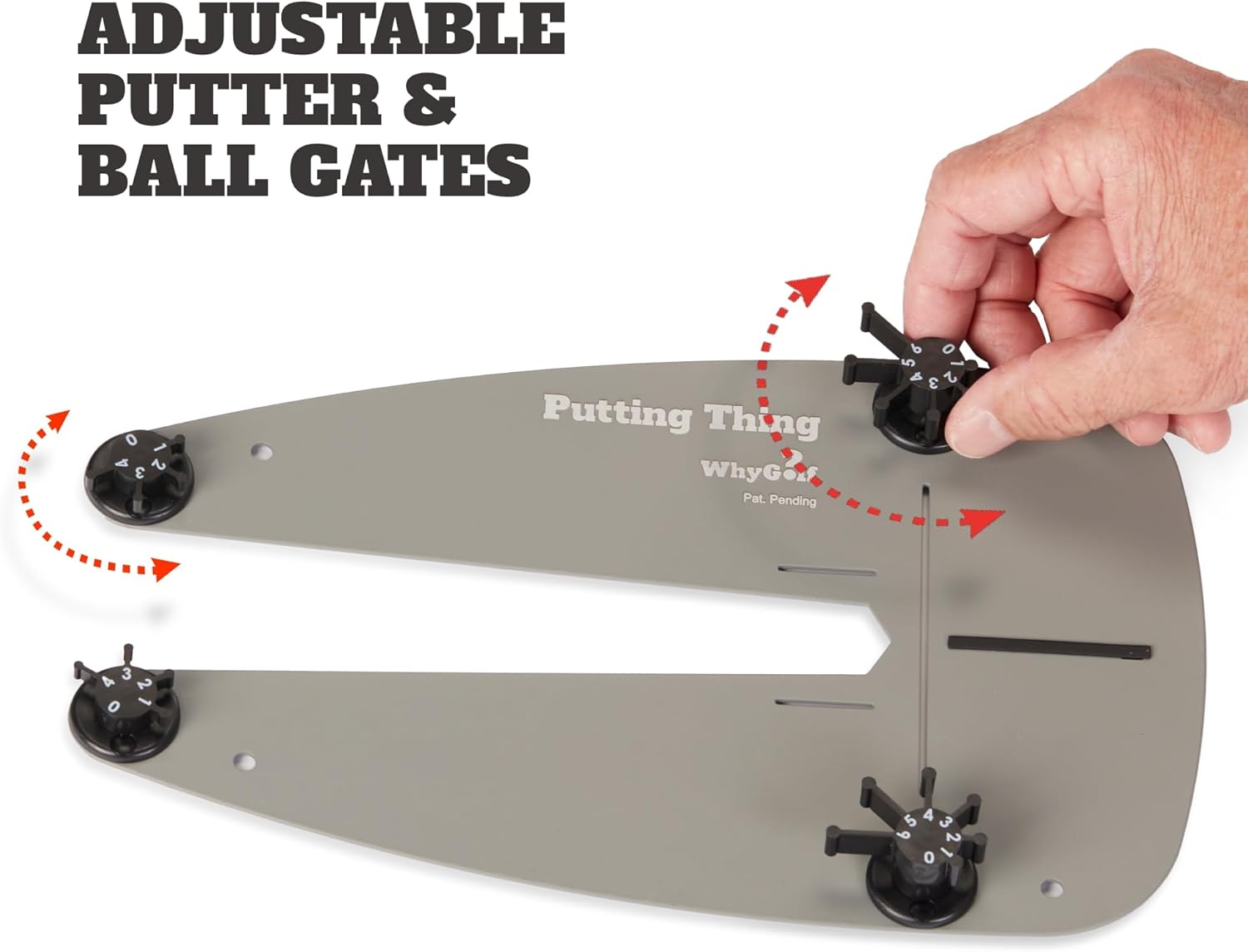 - Master your Putts: WhyGolf's Putting Thing's patent-pending fully-adjustable putter and ball gates will help you repeatedly strike your putts in the sweet spot and down your intended target line, allowing you to make more putts. It's unique design allows you to consistently practice proper putting fundamentals such as setup, eye position, and face alignment.