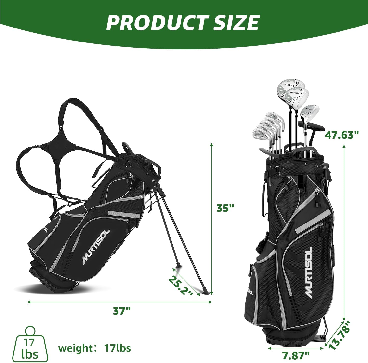 - Lightweight Stand Bag with Rain Hood: Lightweight and premium carry bag features adjustable shoulder straps, rugged handle top, numerous pockets and stable stand for convenient use. You can steadily put the bag on the ground while playing golf. With the extra pockets, some items can be well stored