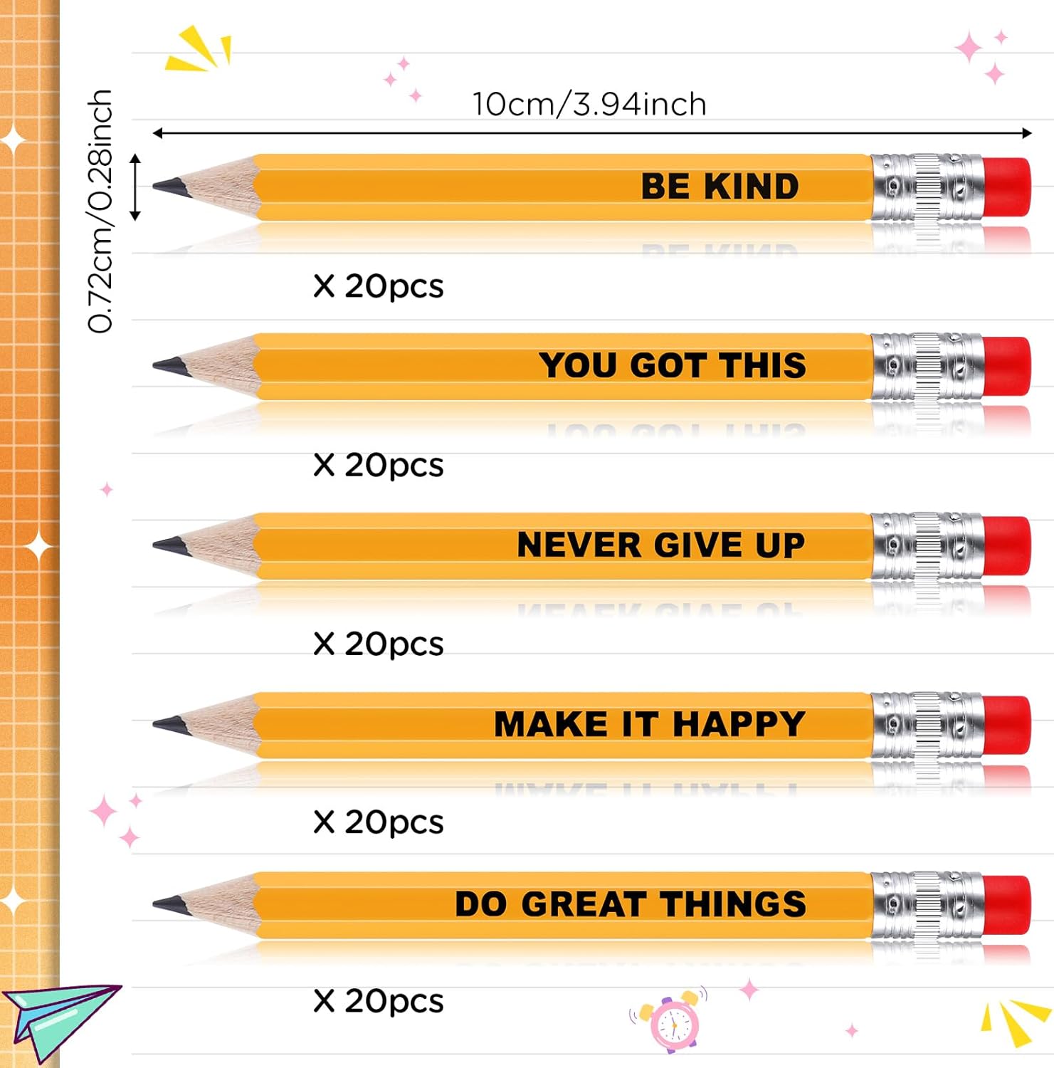- Generous Quantity: our package includes 100 inspirational short pencils for kids, each with an eraser, and engraved with inspirational quotes on the surface, interesting and eye catching, the ample quantity ensures you always have a pencil handy whenever inspiration strikes