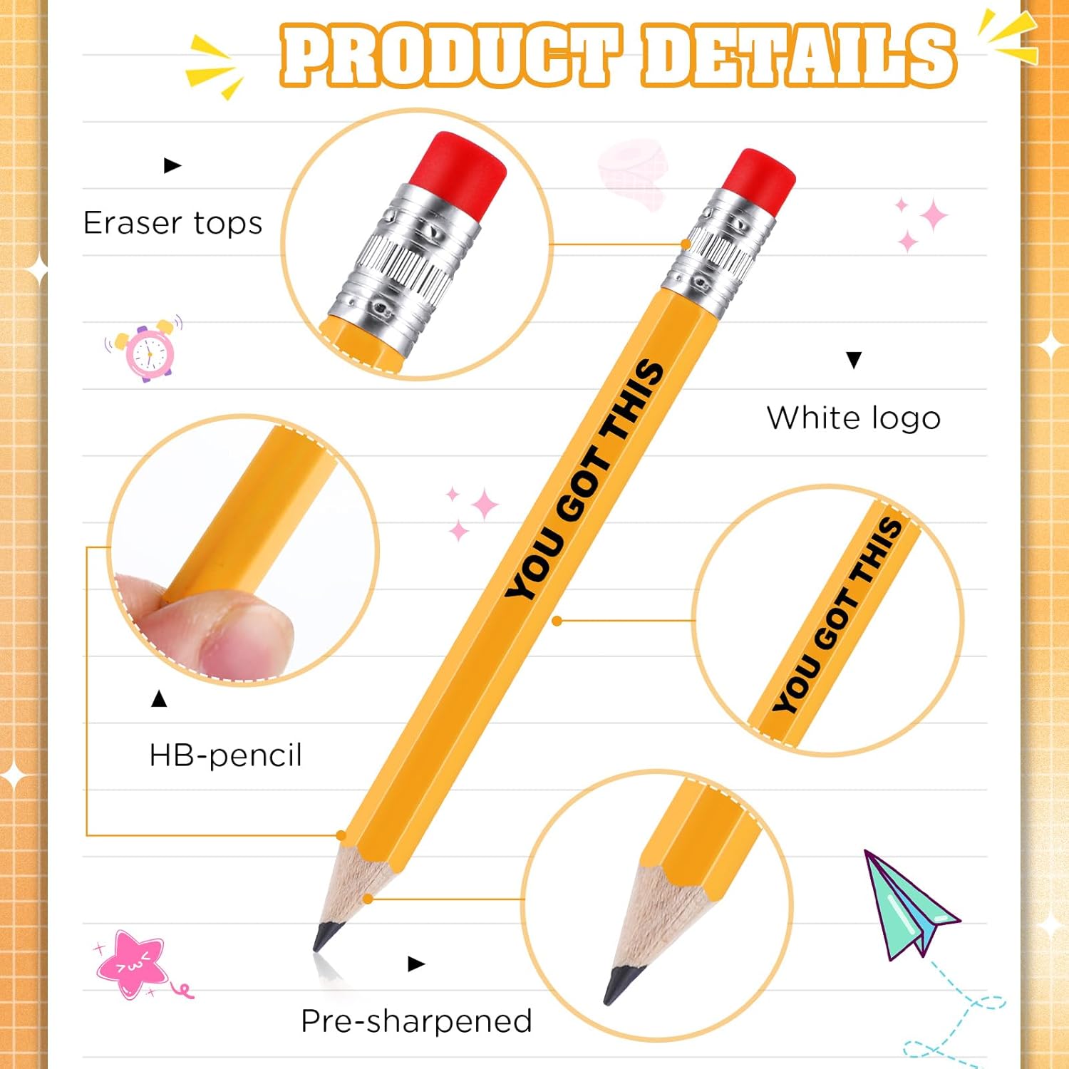 Jetec 100 Pcs Mini Pencils Bulk Inspirational Golf Wooden Half Pencils with Eraser and Motivational Sayings Back to School Gifts for Kids Student Teacher First Day of School(Yellow Color)