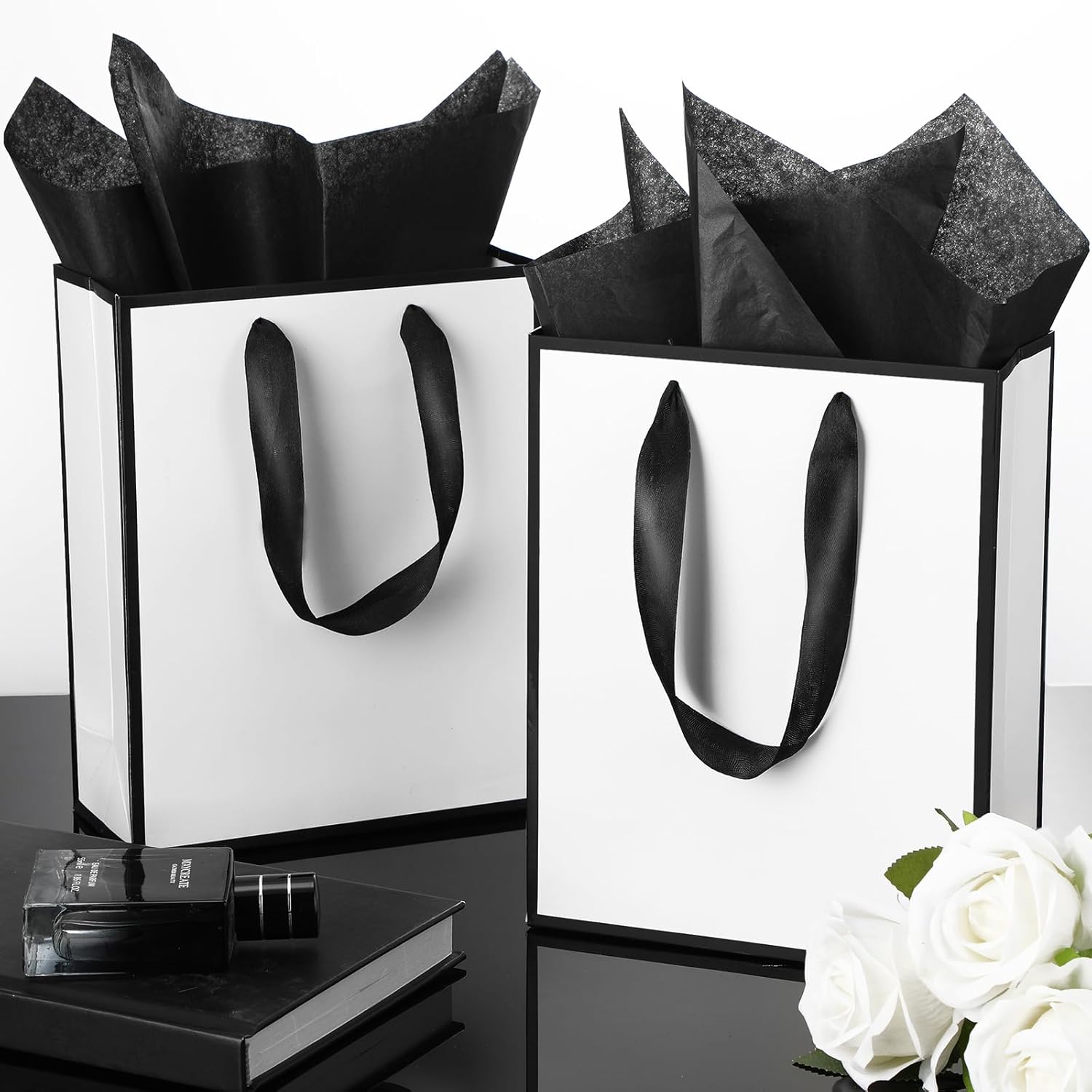 - Exquisite Design: gift bag features the appearance of white and printed black edge design, carrying handle with black satin ribbon, leaving a deep elegance impression; There is no text on the gift bag, you can write your blessing on the bag to express your feelings