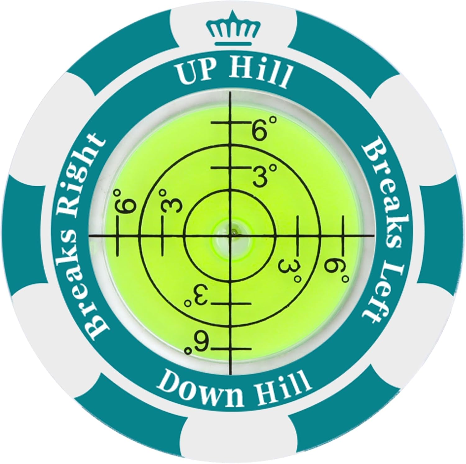 - Efficient Golf Ball Marker: With the bubble in the spirit level moving around the dial, you can instantly identify the slope of the green. Each quadrant on the dial represents the path your ball will take towards the hole, offering invaluable insights for your putt. The further from the center circle, the greater the slope or break.