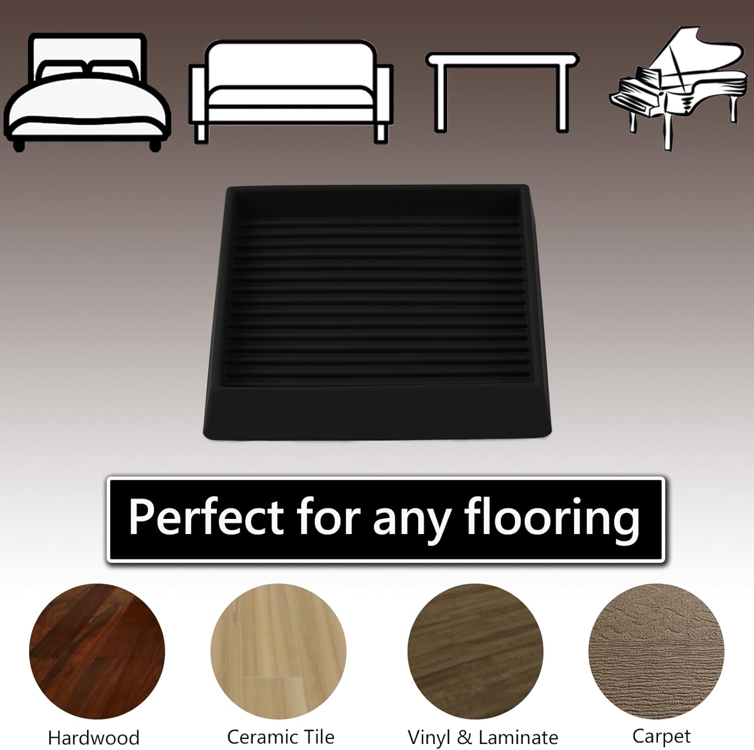 3x3 Square Rubber Furniture Caster Cups, Anti-Sliding Furniture Pads Bed Stopper Floor Protectors with Grip - Protect Any Flooring