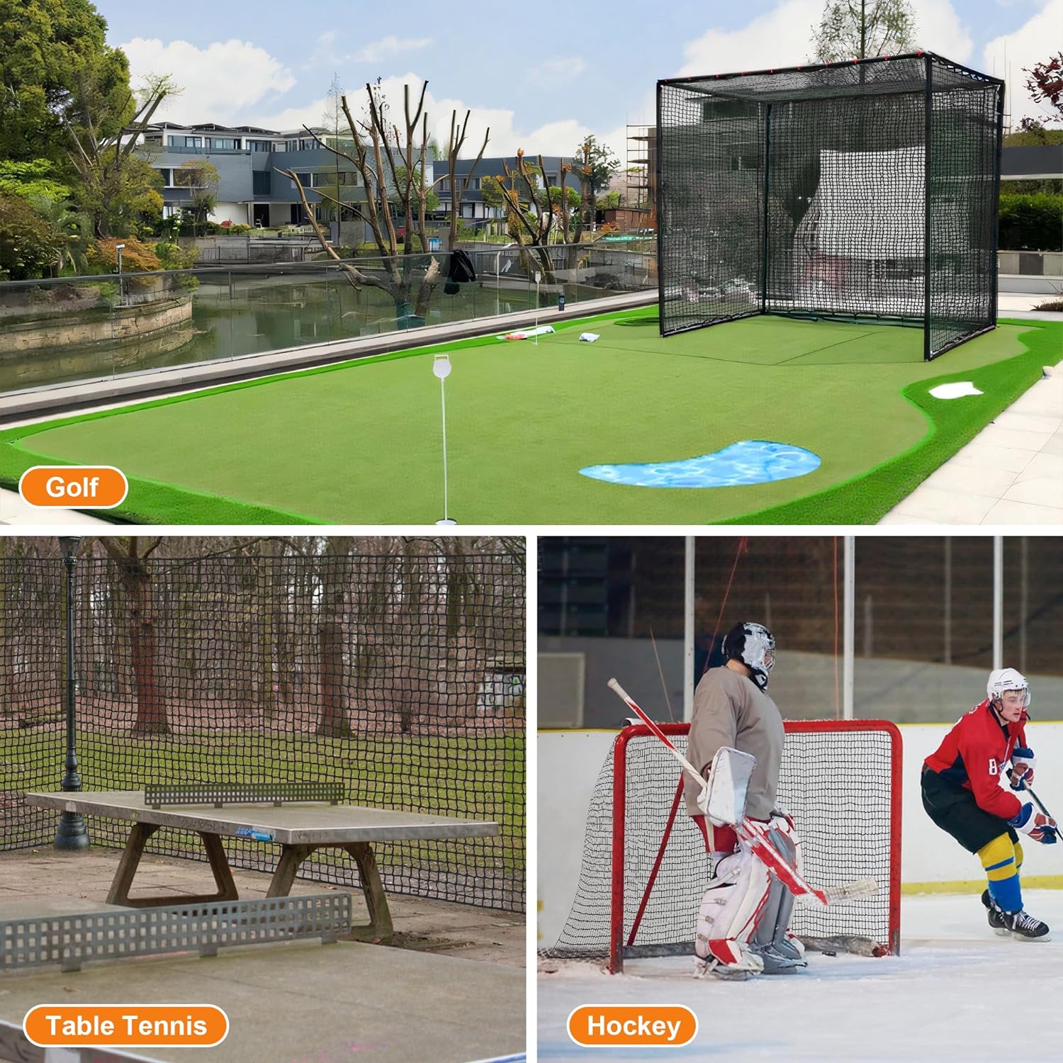 - 【Widely Used for Various Ball Games】 Not just used for playing golf balls, but also widely used for other ball games, like baseball, hockey, soccer, football, basketball, lacrosse, table tennis, badminton,the best ball stop netting, and sport netting barrier for you. Multiple sizes for your choice: 10/15/20/25/30/40/50ft, to meet your different using meets.