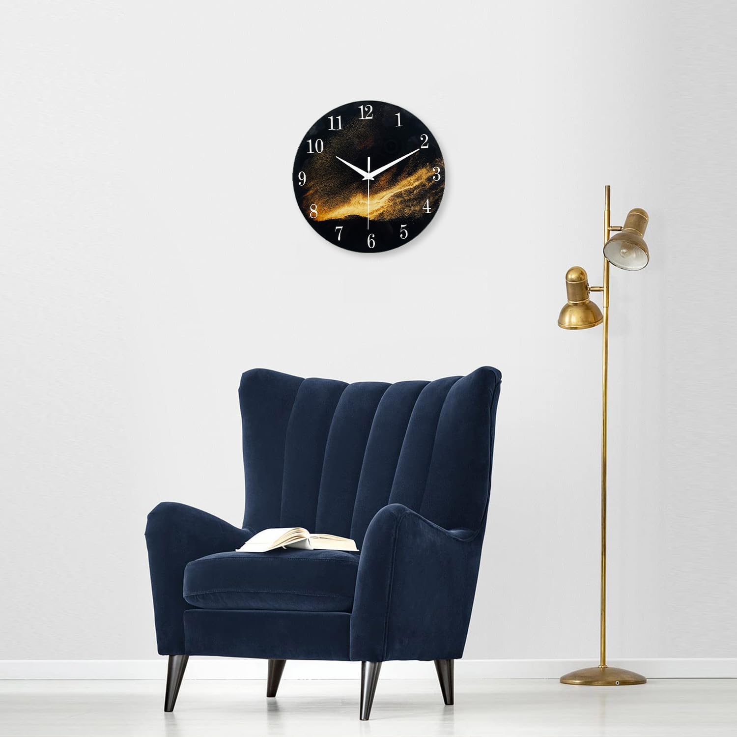 Black and Gold Modern Wall Clocks Battery Operated 12 Inch Silent Wall Clock Non Ticking Glass Wall Clock for Living Room