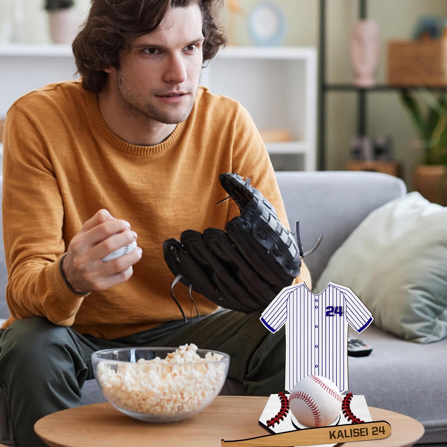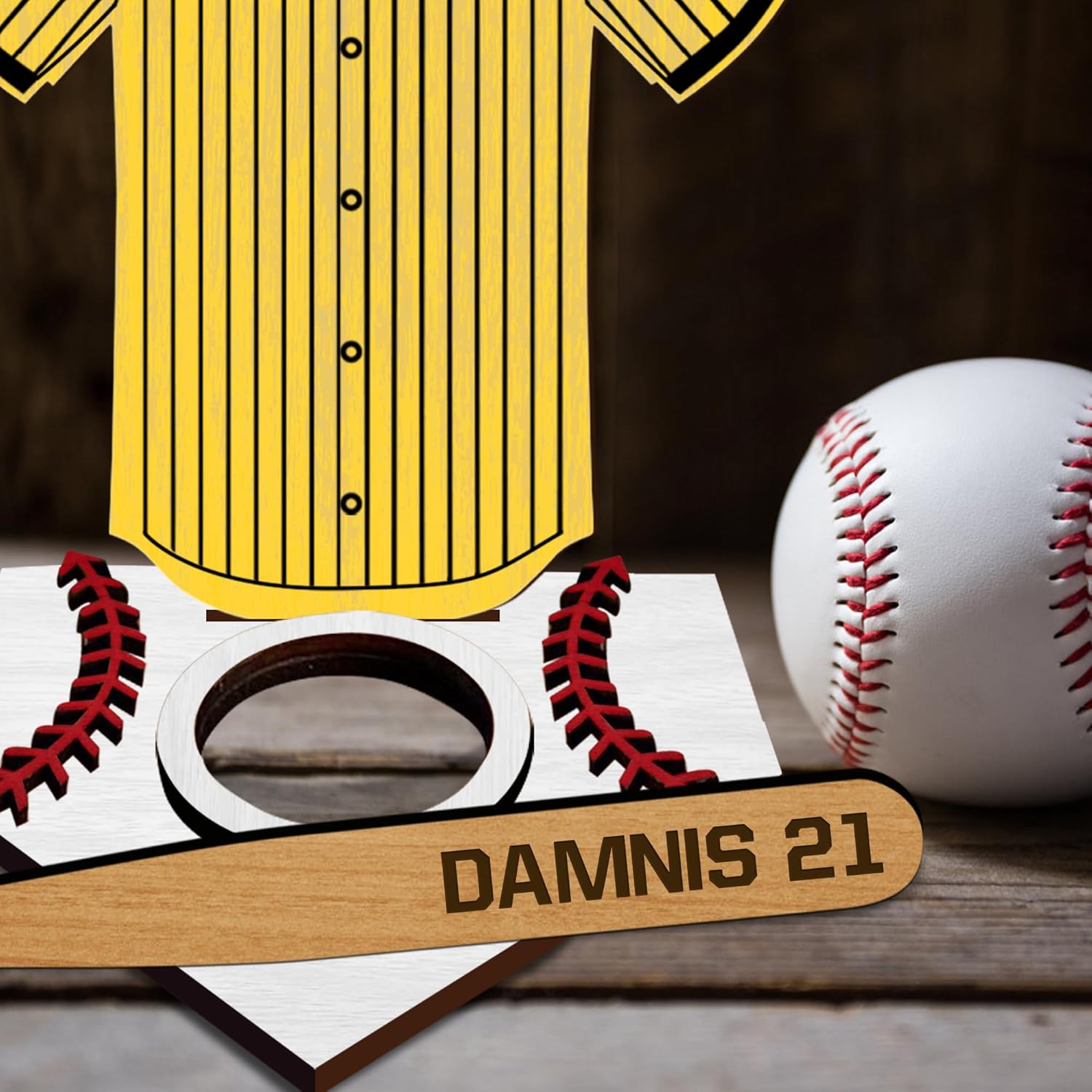Personalised Baseball Ball Holder Custom Name Number Baseball Jersey Sign Display Case Home Run Baseball Ball Desk Tidy Home Decor Gift for Boy Men Dad Grandpa (Baseball Jersey Baseball Holder)