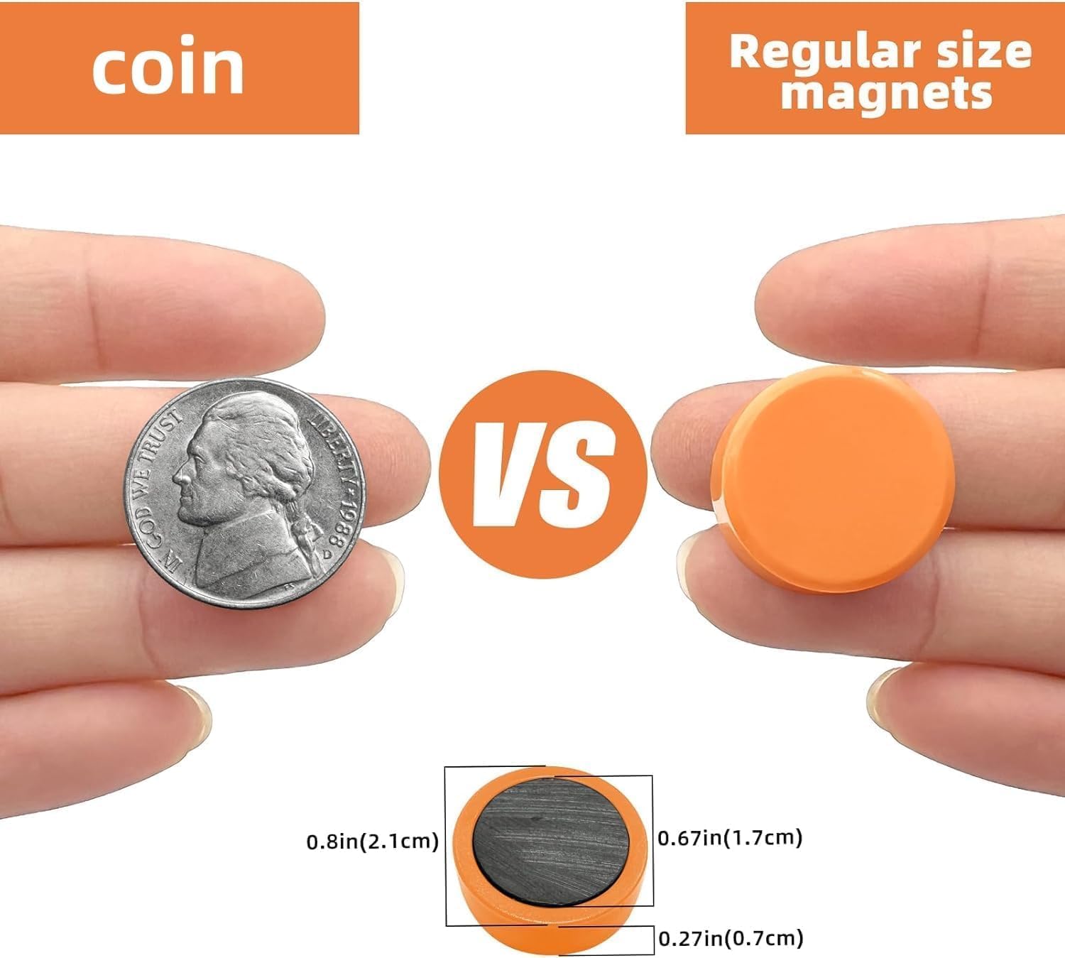 - Circle Magnets, Compact Size, Heavy Duty Grip:These strong fridge magnets are compact but enough to hold multiple sheets of paper or lightweight objects, making them ideal as refrigerator magnets or locker magnets for adults and teens.
