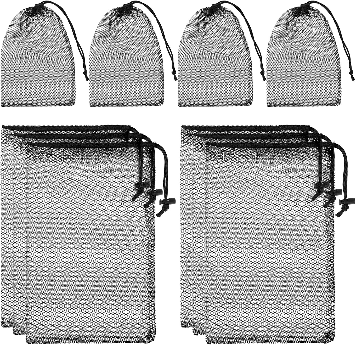 Sliverdew 10PCS Small Mesh Bags Drawstring Black Nylon Mesh Drawstring Bag Mini Mesh Pouch Bag Nylon Net Bags with Drawstrings Small Travel Stuff Bags Sacks 8 x 12 inch