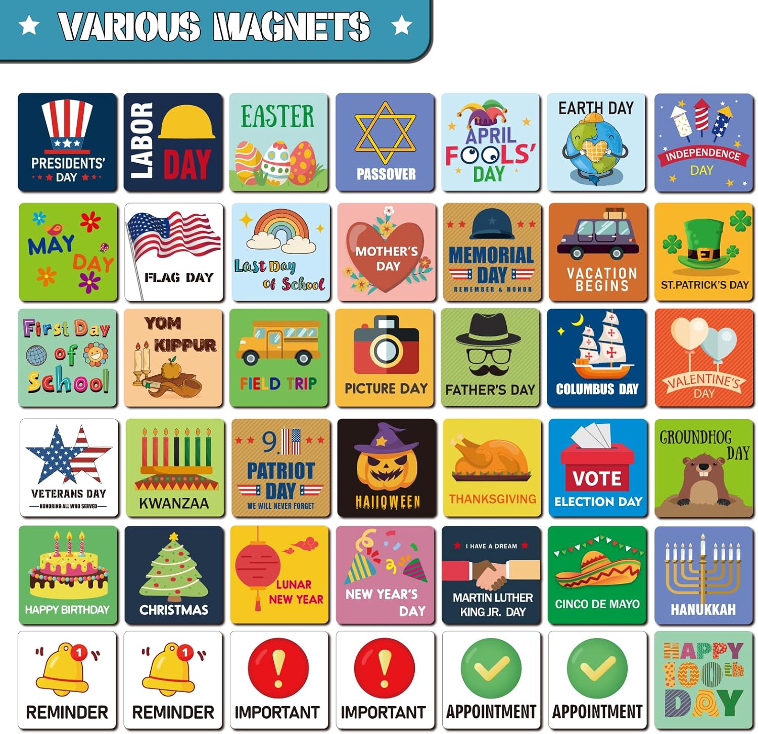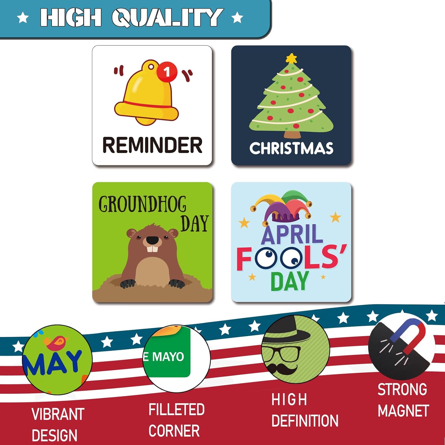 - Holiday Themed Design:These calendar magnets cover almost all American holidays and come with 6 reminder magnets for your whiteboard calendar