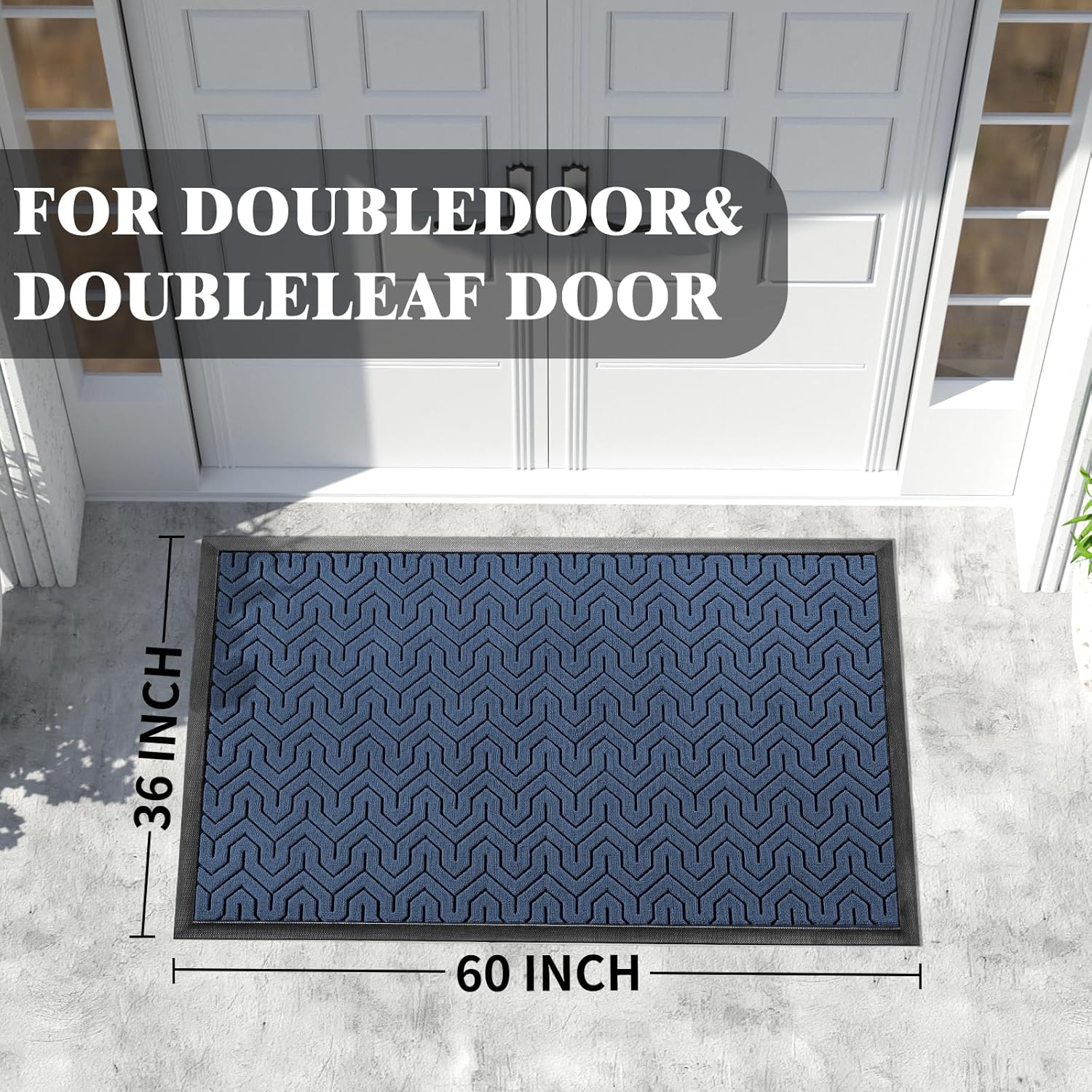 Yimobra Extra Large Door Mat Outside Entrance 60x36, Waterproof Heavy Duty Outdoor Mats for Front Door, Non Slip Rubber Entry Mat for Garage Patio Indoor, Easy Clean, Blue