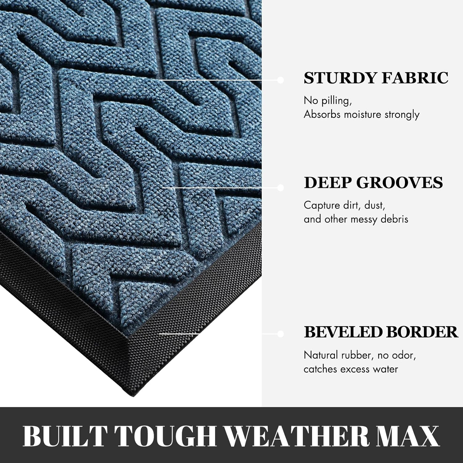 Yimobra Extra Large Door Mat Outside Entrance 60x36, Waterproof Heavy Duty Outdoor Mats for Front Door, Non Slip Rubber Entry Mat for Garage Patio Indoor, Easy Clean, Mix Blue