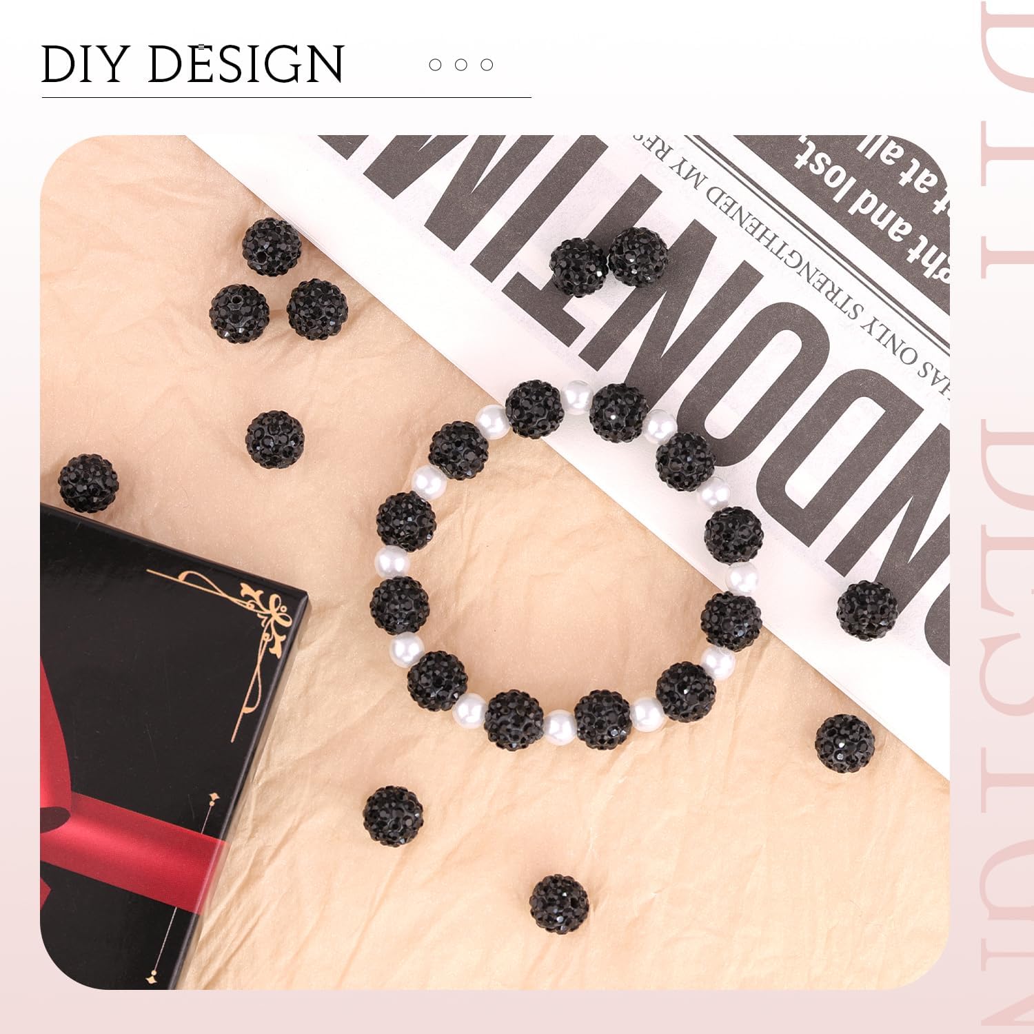 100 pcs 10mm Rhinestone Beads for Jewelry Making, Black Shiny Round Shamballa Disco Beads Bulk, Sparkle Crystal Clay Christmas for Bracelet Baseball Necklace Earring Crafting and DIY