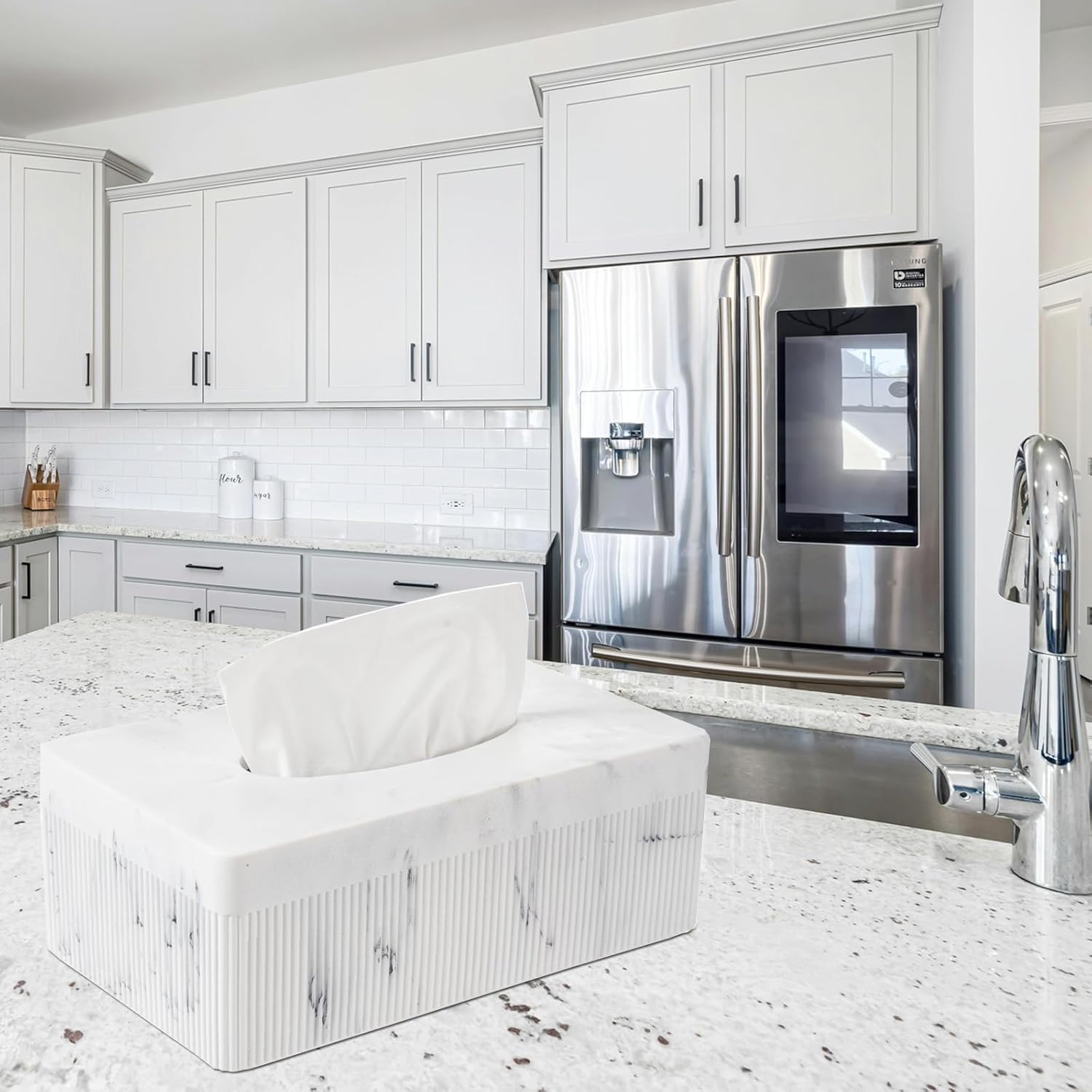 Marble Tissue Box Cover, Rectangular Napkin Facial Tissues Holder for Home Office, Hand Poured Marble Tissue Box Holder, 10 x 5.7 x 3.7 inches, White