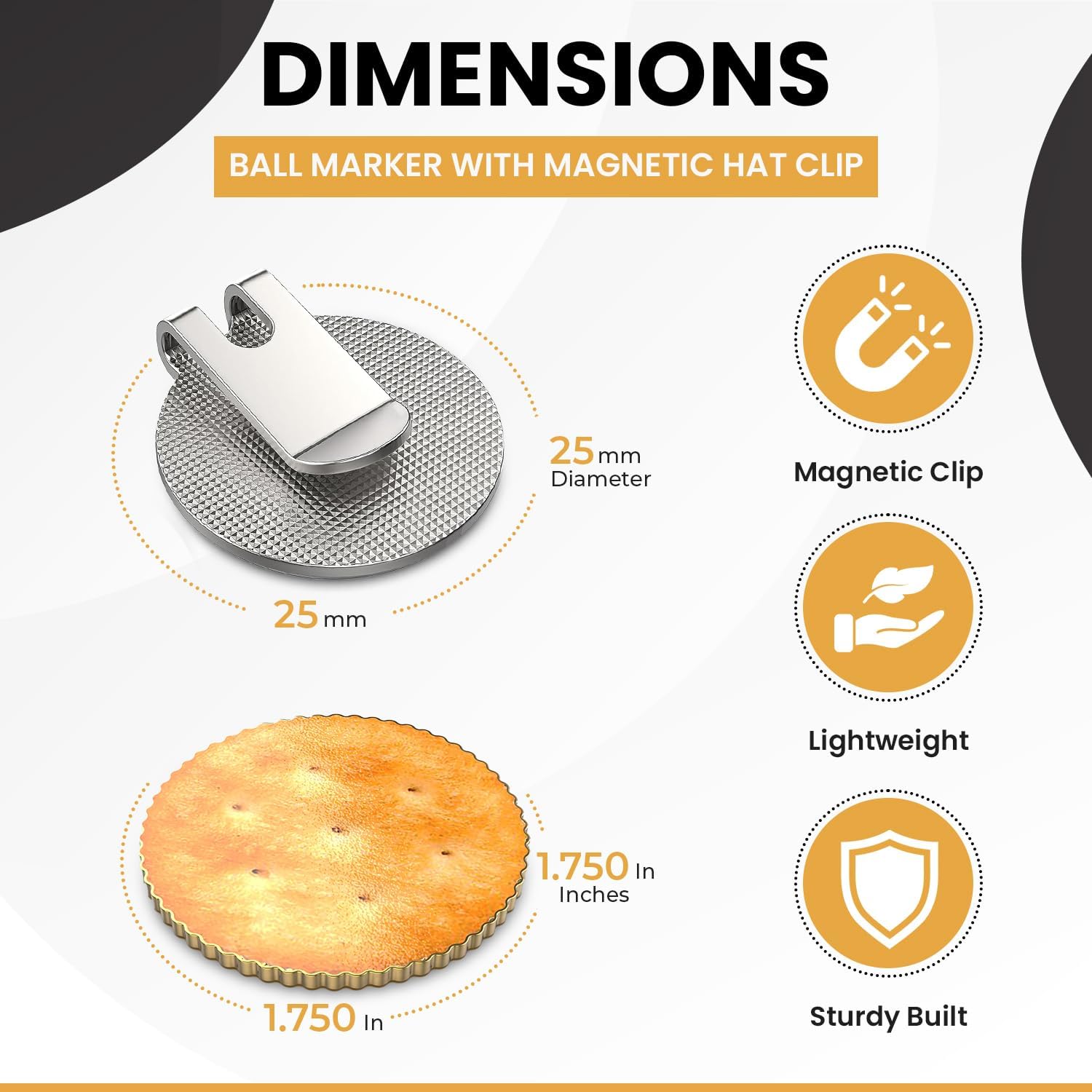 - โญใ๐๐๐๐ฃ๐ง๐๐๐๐ ๐ ๐๐๐ก๐๐ง๐๐ ๐๐๐ง ๐๐๐๐ฃใ: The ball marker comes with a convenient hat magnetic clip for travel. It is designed with a versatile clasp to easily attach to a wide array of hats, visors, and caps, staying securely in place even during active play or windy conditions. Our golf ball marker is meticulously crafted with a focus on exceptional build quality, ensuring its long-lasting durability on the course. Made from high-quality metal that boasts robust construction.