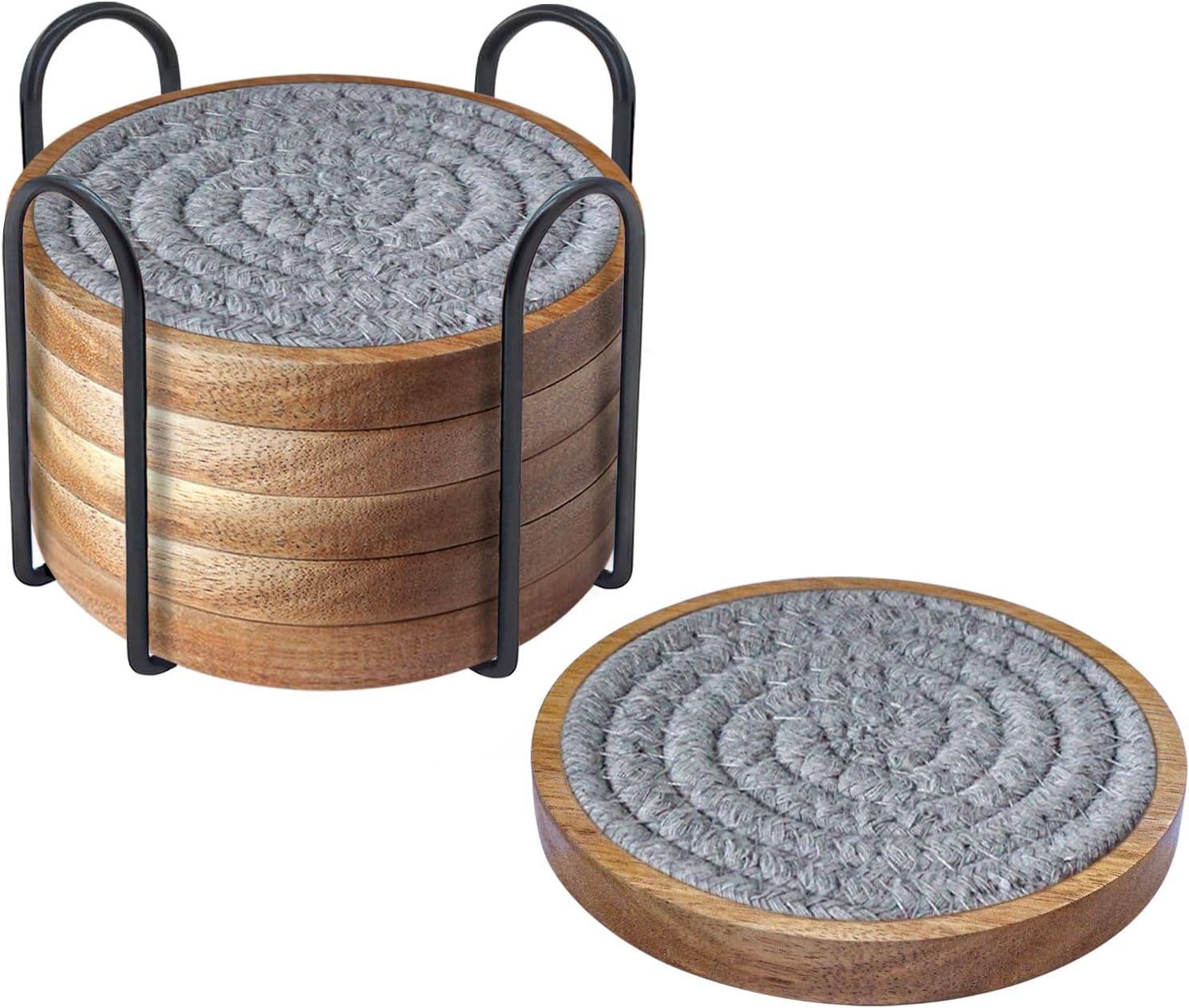 - 🍷Easy to Clean: Just get out the woven coasters, rinse coasters with water, and hang them up to dry; Diameter 4.3 inches, larger and thicker than other coasters, and fit for kinds of cups, reusable round coasters come with great gift packing bag, perfect for housewarming and kitchen gifts.