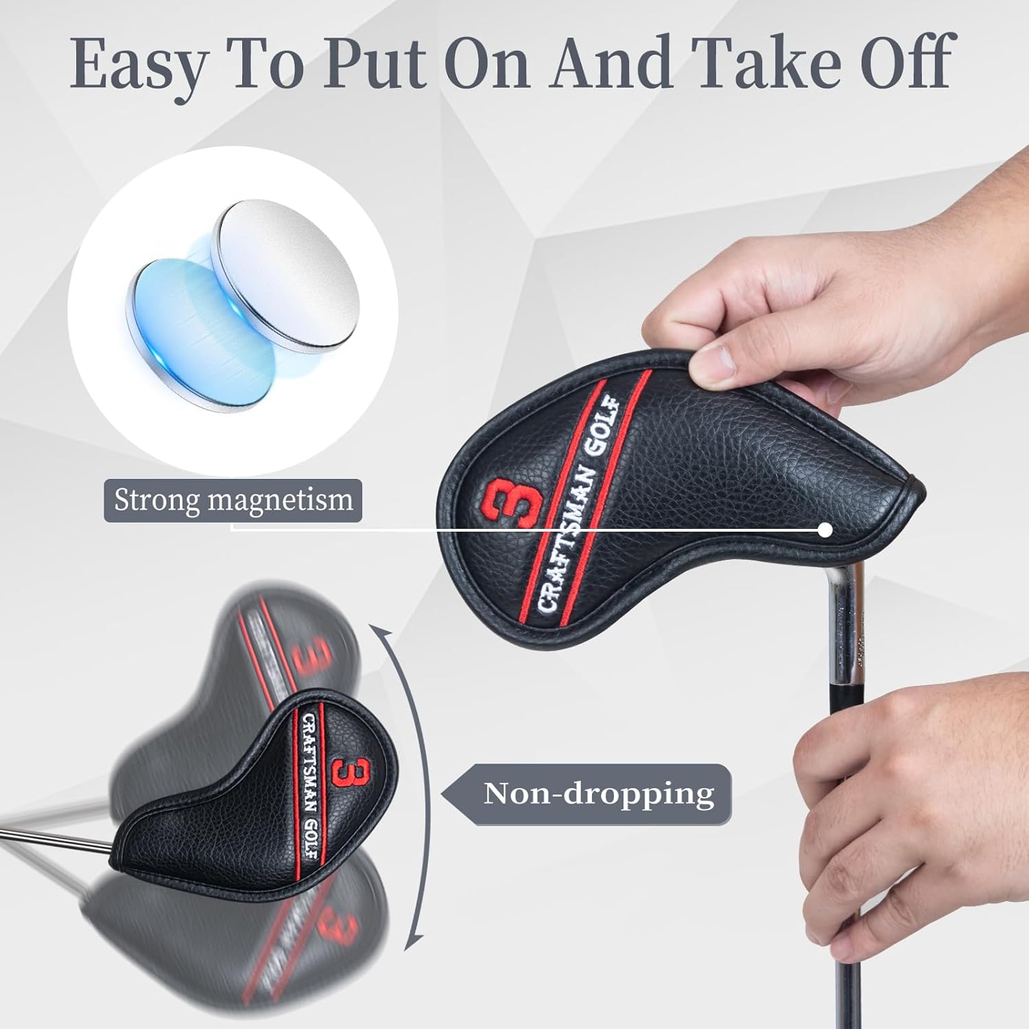 CRAFTSMAN GOLF 12pcs or 1pc Black Leather Golf Iron Head Covers Set Headcover Colorful Number Embroideried for Callaway Ping Taylormade Cobra Also Custom Version w/Your Name