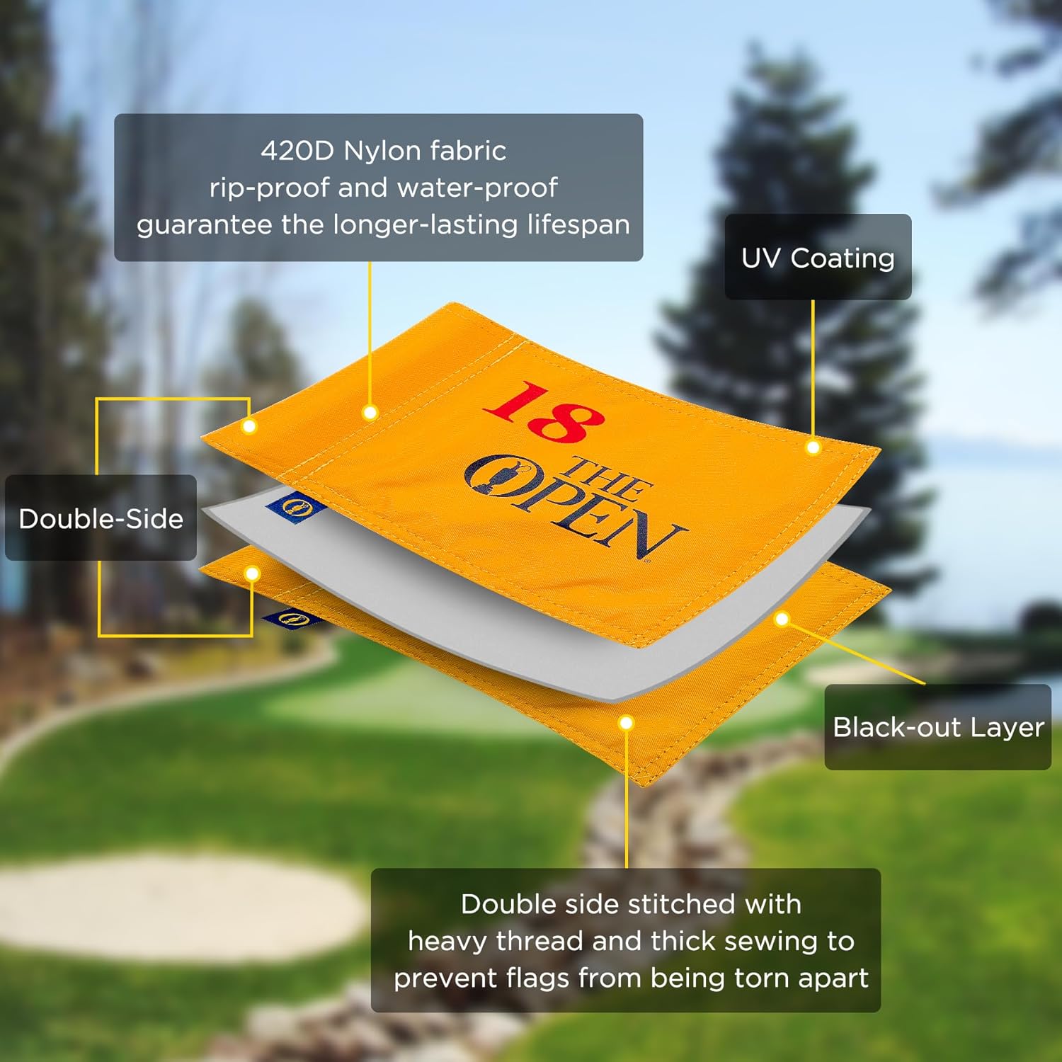 - Exclusive TheOpen Design: Stand out with the latest TheOpen pattern, exquisitely silk-screened on both sides of the 6x8 inch practice putting green flag, making it a must-have for golf enthusiasts.