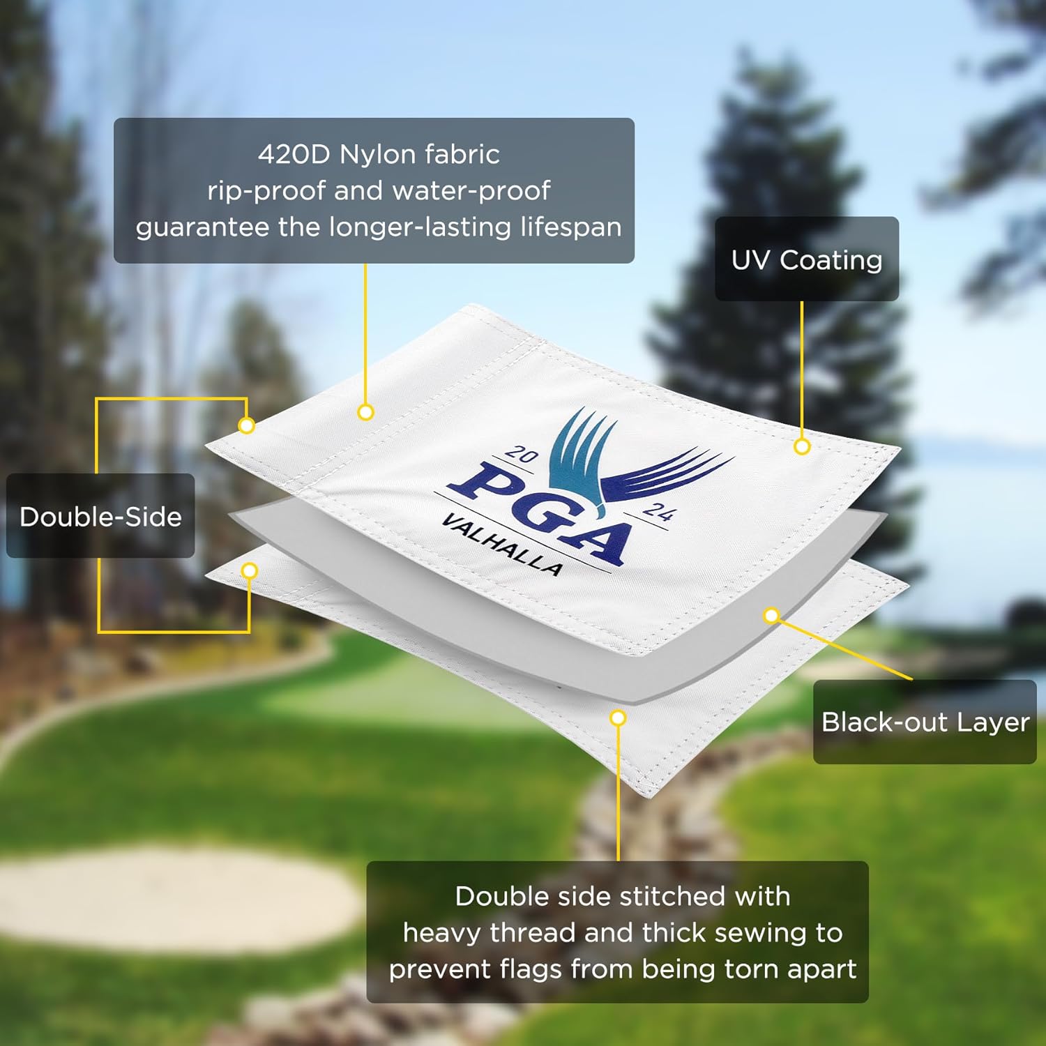 - Superior Craftsmanship: Each Golf flag features precision double-stitching for enhanced durability, preventing fraying edges for long-lasting use.