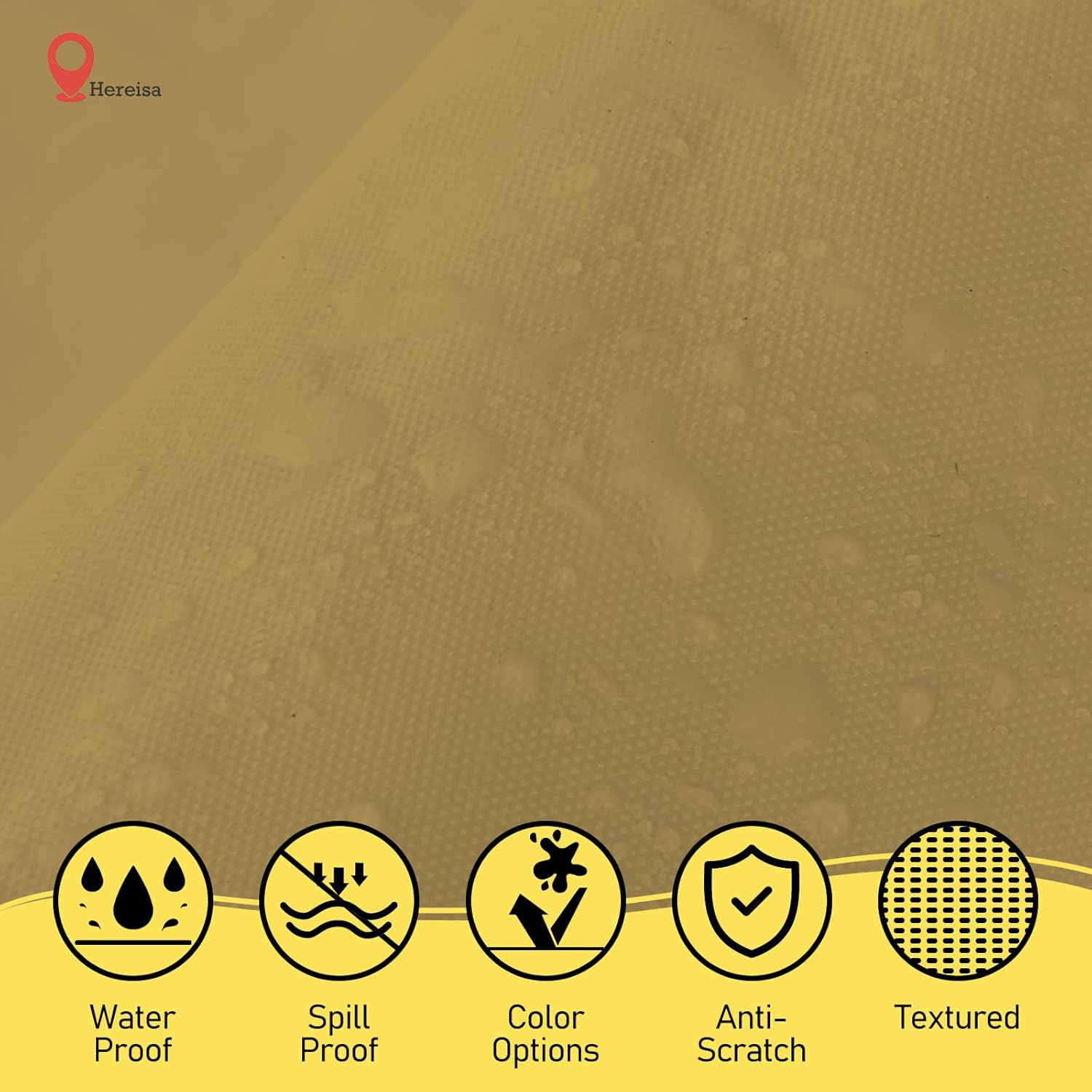 - [QUALITY ASSURANCE]: "HereIsA" Gold Plastic Tablecloth made of PEVA vinyl is chlorine free, plastic odor free, BPA Free, 100% food grade and children's safety. PEVA material do not expose your family and the environment to harmful chemical fumes. Enjoy your party time without worrying about the odor of unhealthy.