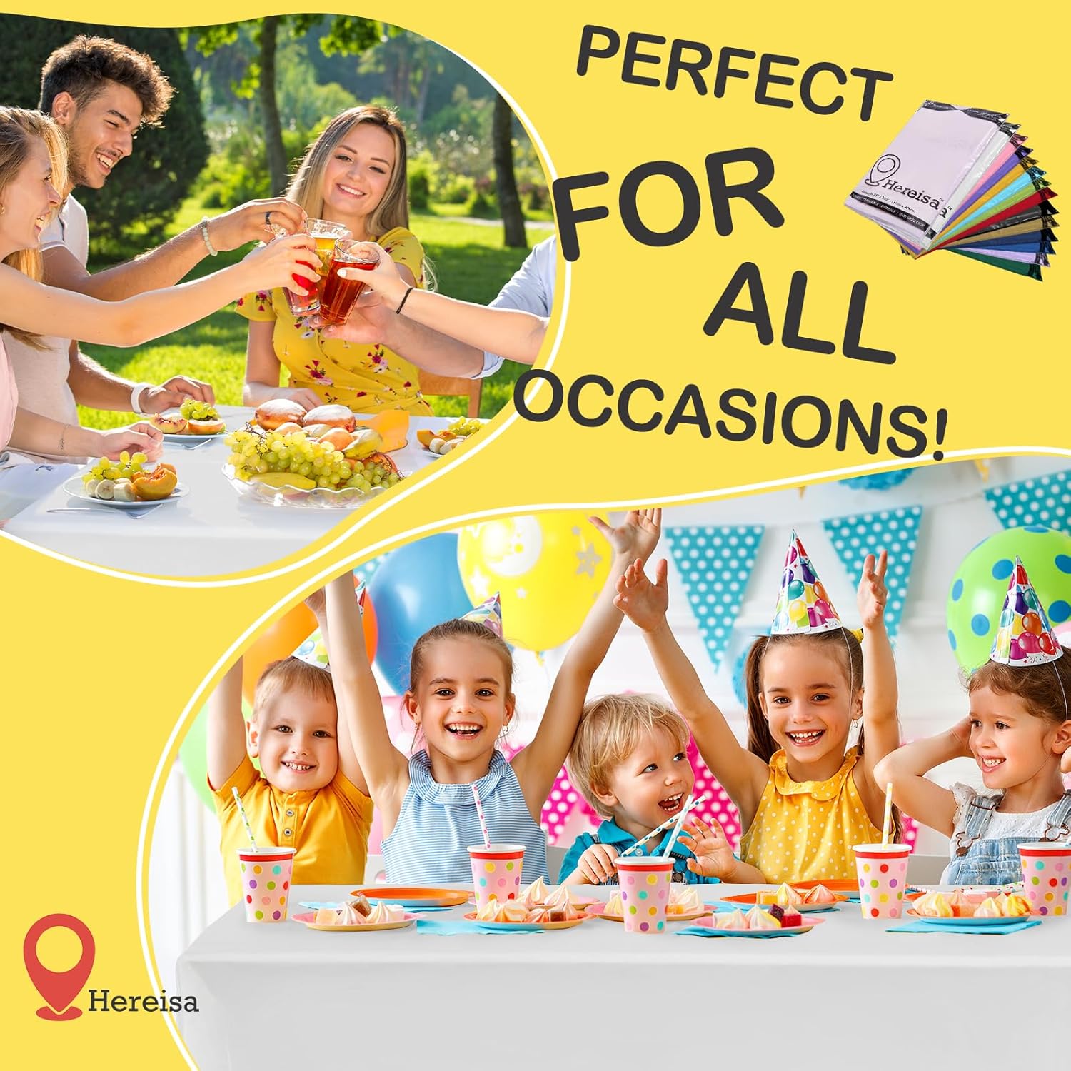 - [MULTIPLE PURPOSE]: Disposable Table Covers are suitable for indoor, outdoor, daily use, dinner, picnic, barbecue, birthdays, wedding, graduations, christmas, thanksgiving parties, also for special occasions or daily entertainment. In addition to protecting your table, these overlays can also be a good background, picnic mat or banner! It can be used in a variety of environments. See our full range of vibrant and unique colors, which will match your party theme and meet your needs.