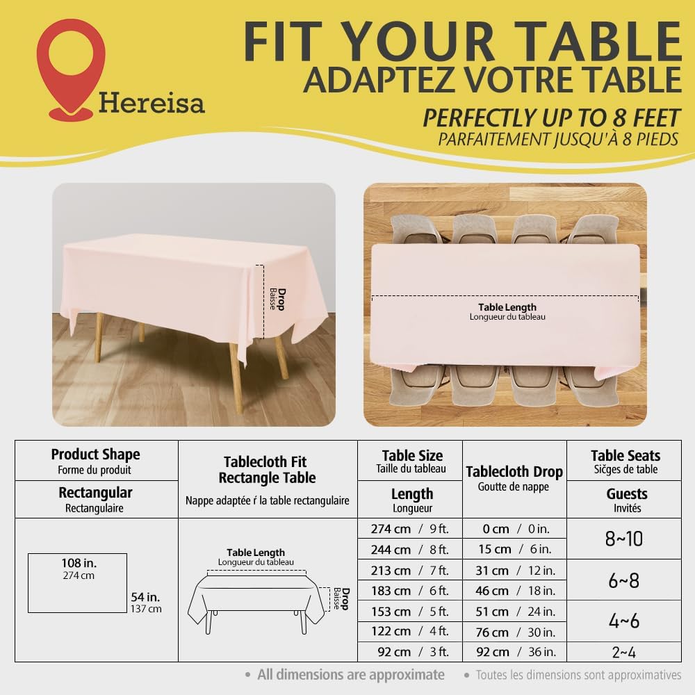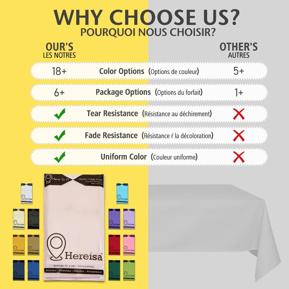 - [QUALITY ASSURANCE]: "HereIsA" Light Pink Plastic Tablecloth made of PEVA vinyl is chlorine free, plastic odor free, BPA Free, 100% food grade and children's safety. PEVA material do not expose your family and the environment to harmful chemical fumes. Enjoy your party time without worrying about the odor of unhealthy.