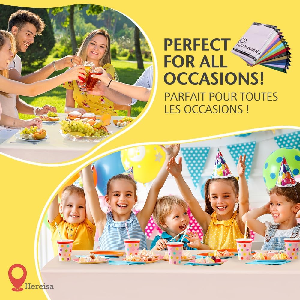 - [MULTIPLE PURPOSE]: Disposable Table Covers are suitable for indoor, outdoor, daily use, dinner, picnic, barbecue, birthdays, wedding, graduations, christmas, thanksgiving parties, also for special occasions or daily entertainment. In addition to protecting your table, these overlays can also be a good background, picnic mat or banner! It can be used in a variety of environments. See our full range of vibrant and unique colors, which will match your party theme and meet your needs.